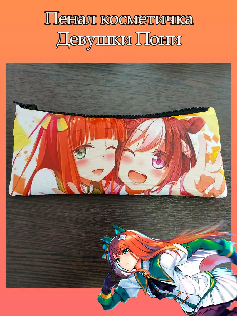 Пенал школьный с большой молнией и с одним вместительным отделением. Изображение из ание Девушки Пони (Pretty Derby). Принт яркий и четкий, устойчивый к выцветанию и стирке.