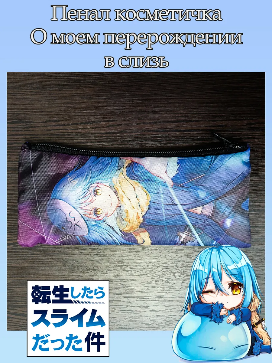 Пенал школьный с большой молнией и с одним вместительным отделением. Изображение из аниме О моем перерождении в слизь (Tensei Shitara Slime Datta Ken). Принт яркий и четкий, устойчивый к выцветанию и стирке.
