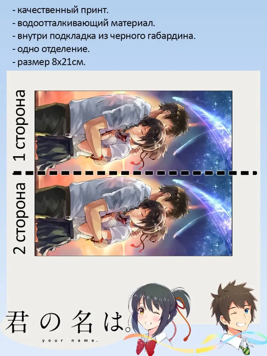 Пенал школьный с большой молнией и с одним вместительным отделением. Изображение из аниме Твое имя ( Kimi no Na wa Your Name ). Принт яркий и четкий, устойчивый к выцветанию и стирке.