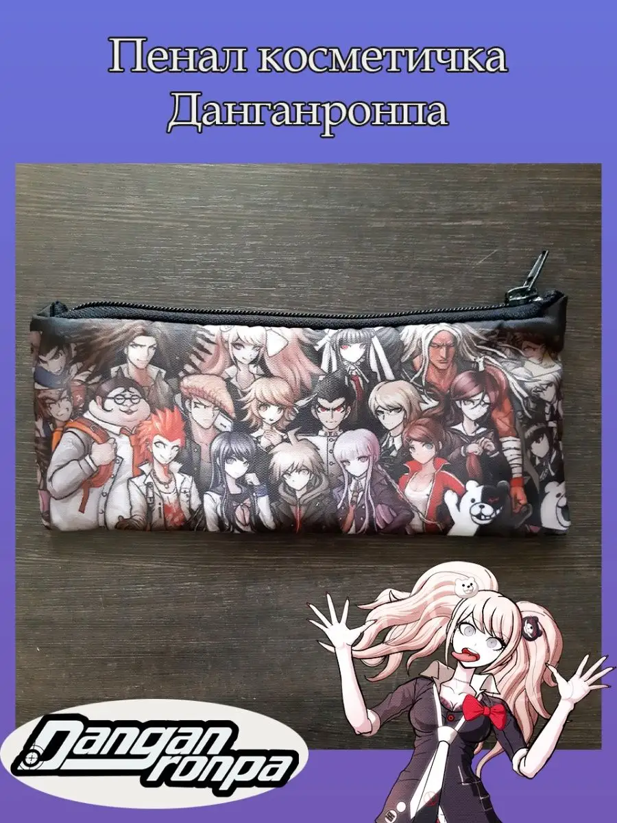 Пенал школьный с большой молнией и с одним вместительным отделением. Изображение из аниме Данганронпа (Danganronpa). Принт яркий и четкий, устойчивый к выцветанию и стирке.