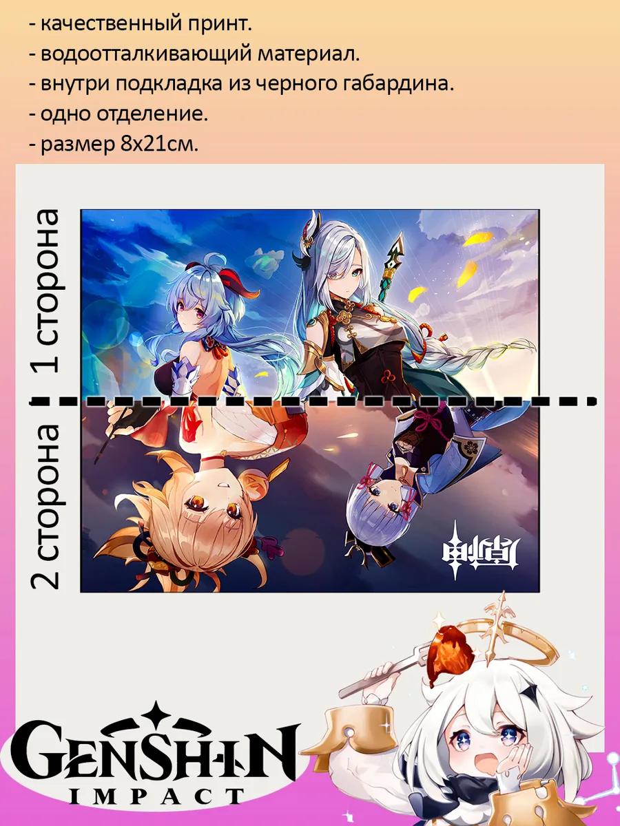 Пенал школьный с большой молнией и с одним вместительным отделением. Изображение из игры Геншин Импакт ( Genshin Impact ). Принт яркий и четкий, устойчивый к выцветанию и стирке.