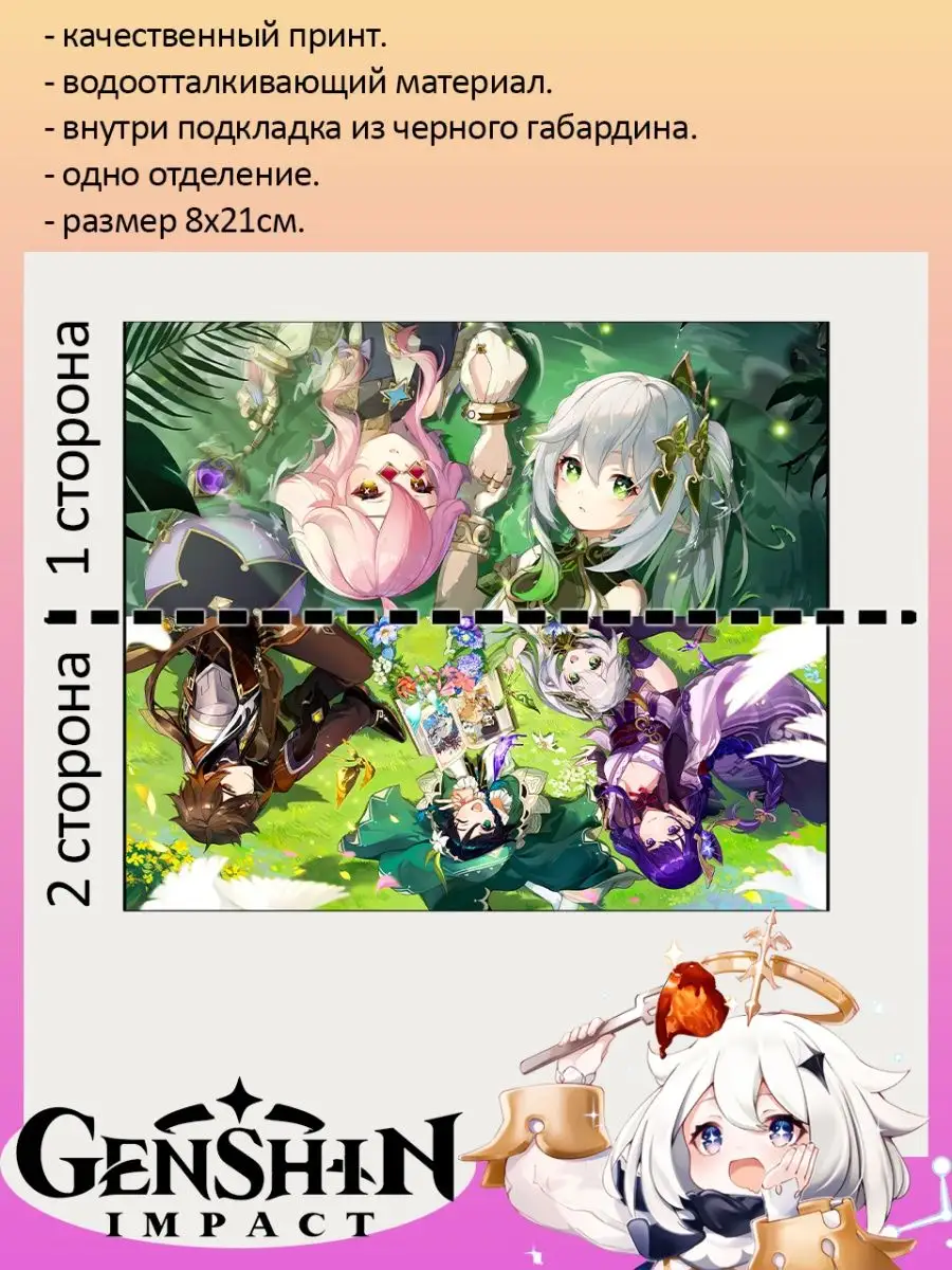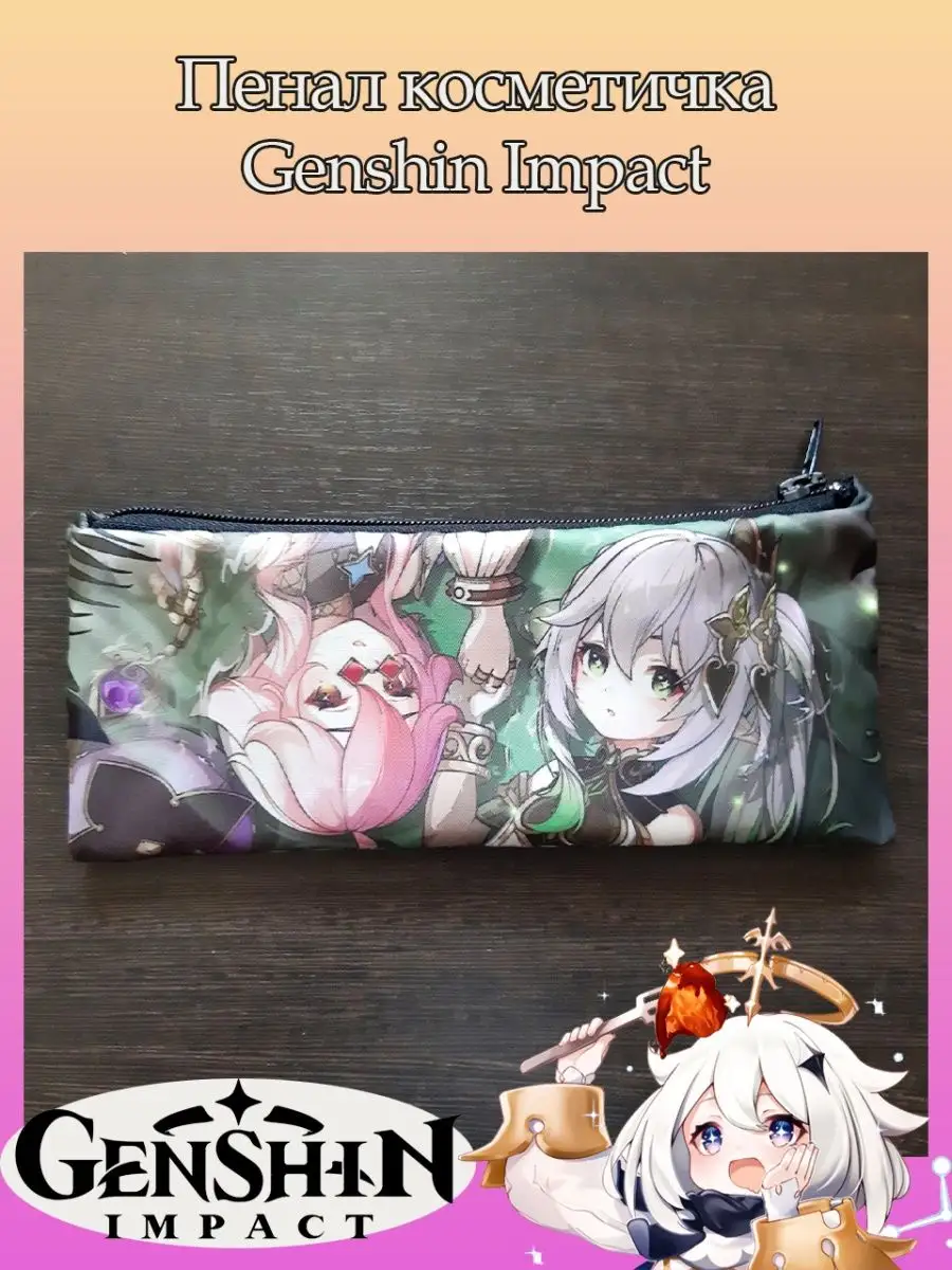 Пенал школьный с большой молнией и с одним вместительным отделением. Изображение из игры Геншин Импакт (Genshin Impact). Принт яркий и четкий, устойчивый к выцветанию и стирке.
