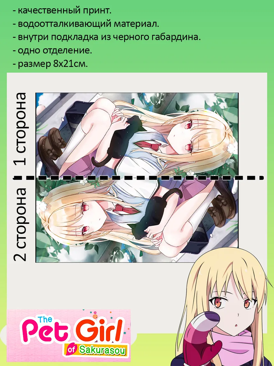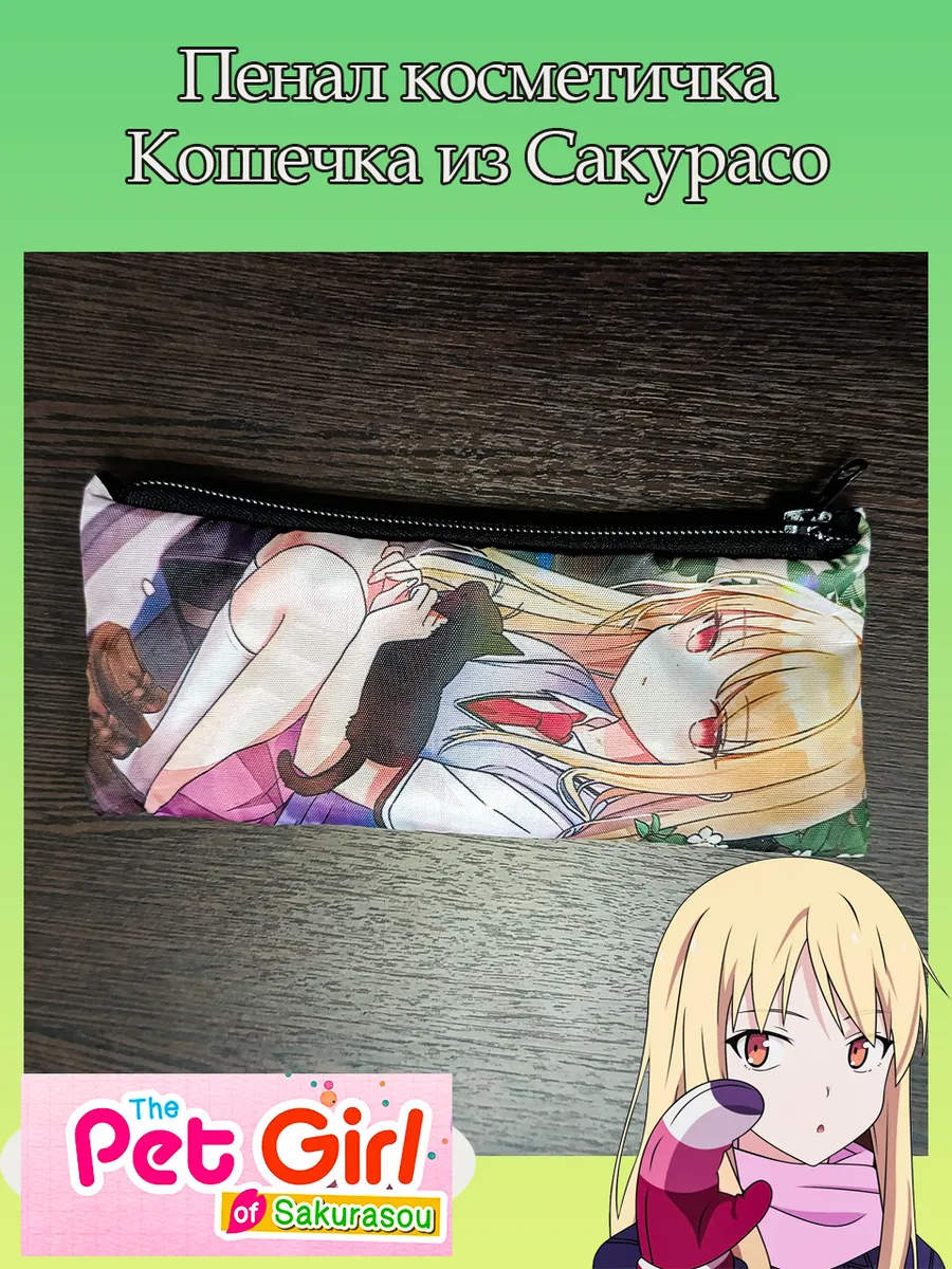 Пенал школьный с большой молнией и с одним вместительным отделением. Изображение из аниме Кошечка из Сакурасо (Sakura-sou no Petto na Kanojo). Принт яркий и четкий, устойчивый к выцветанию и стирке.