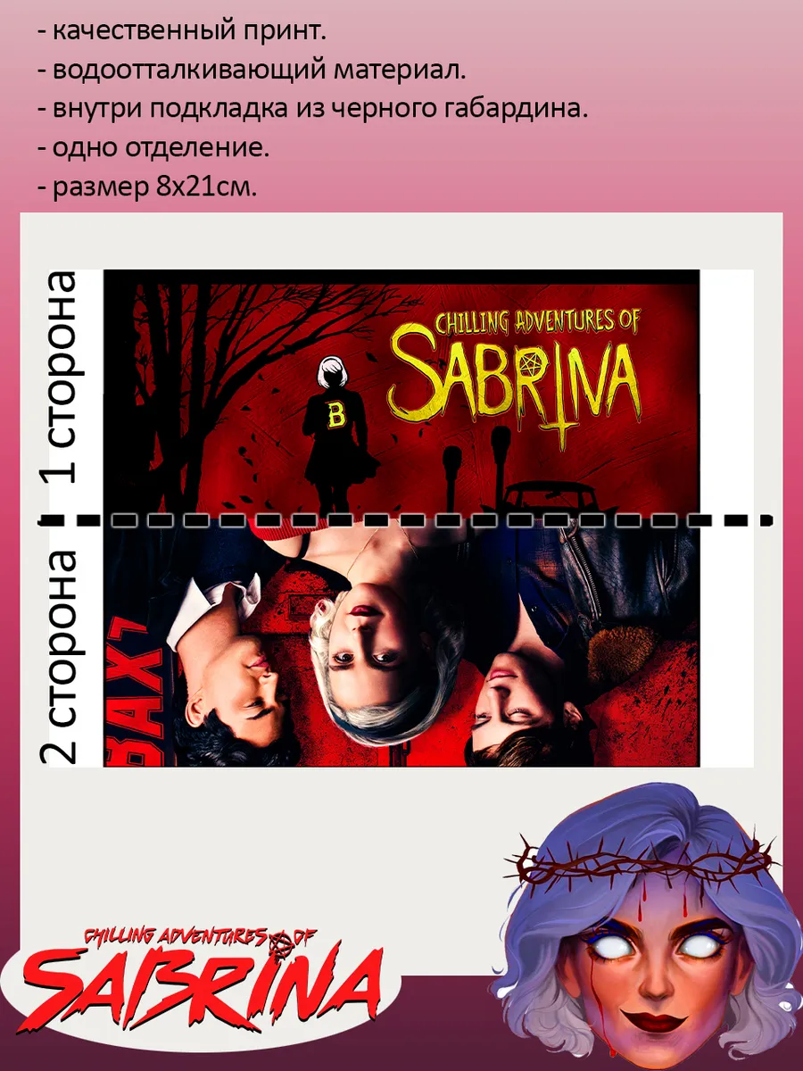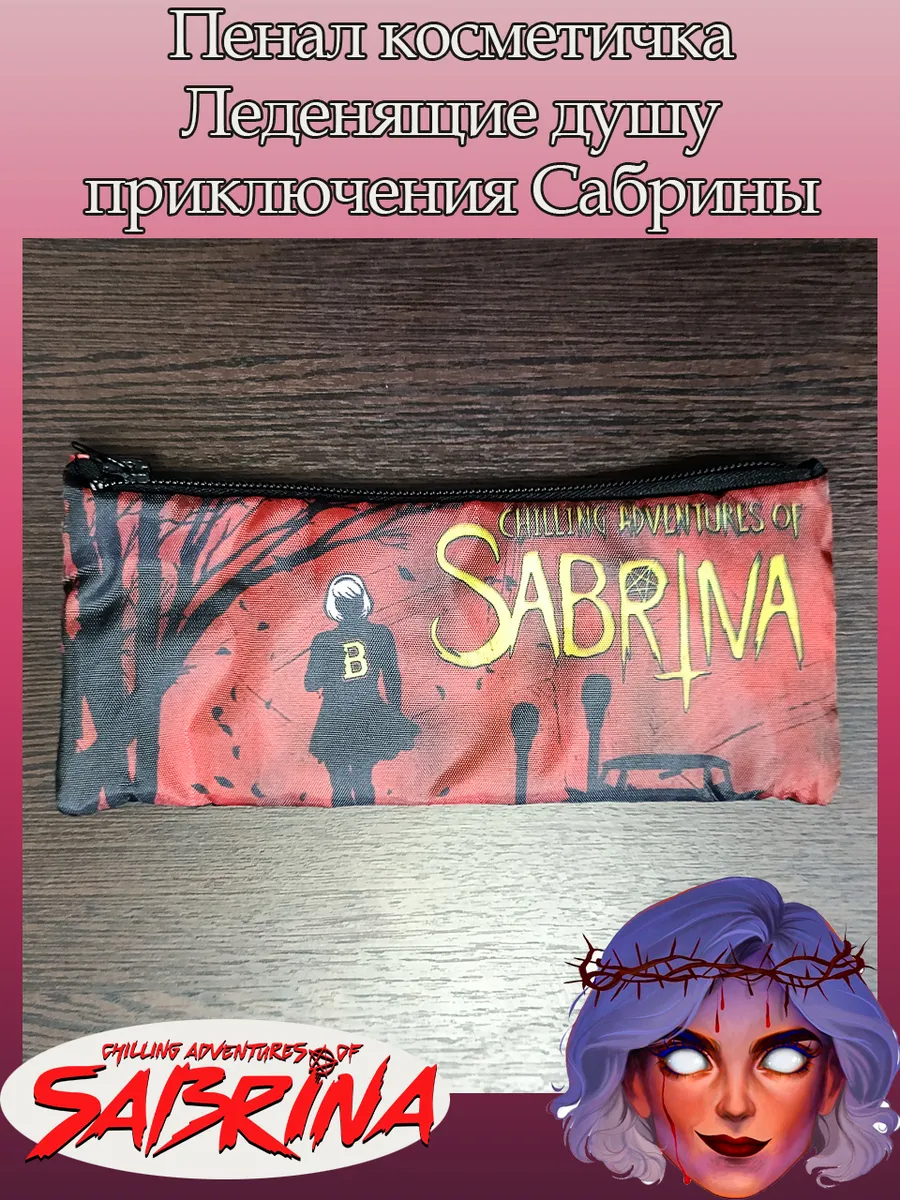 Пенал школьный с большой молнией и с одним вместительным отделением. Изображение из сериала Леденящие душу приключения Сабрины (Chilling Adventures of Sabrina). Принт яркий и четкий, устойчивый к выцветанию и стирке.