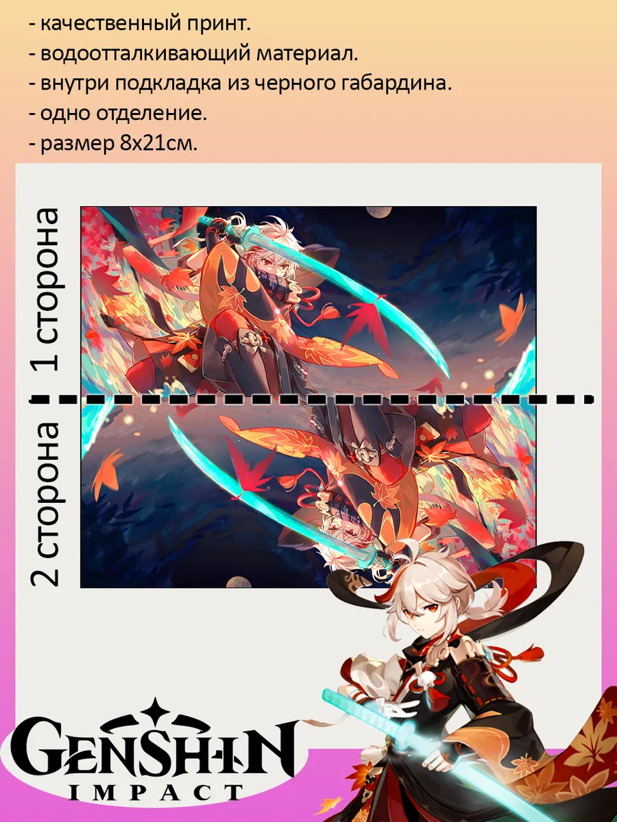 Пенал школьный с большой молнией и с одним вместительным отделением. Изображение из игры Геншин Импакт ( Genshin Impact ). Принт яркий и четкий, устойчивый к выцветанию и стирке.
