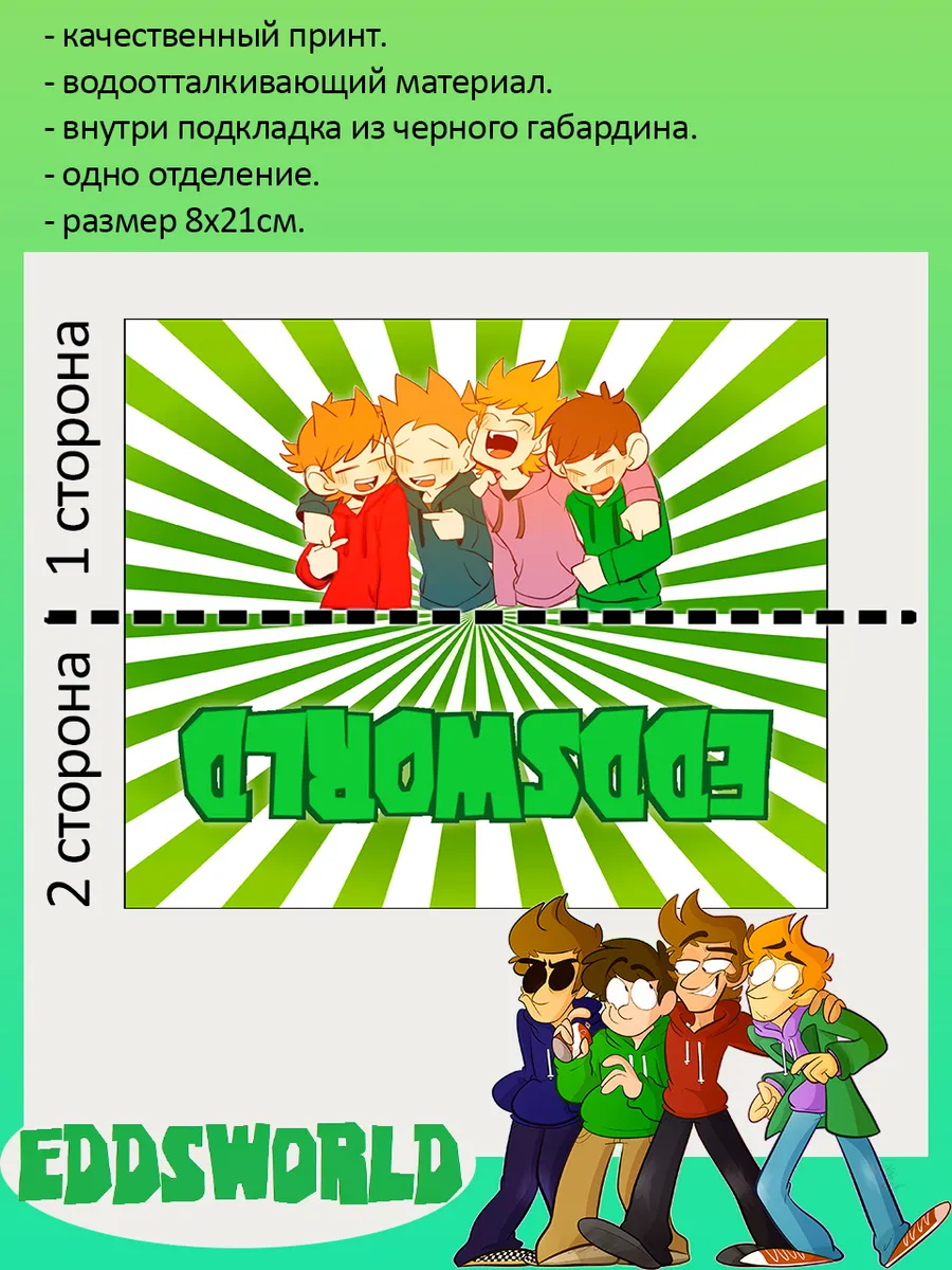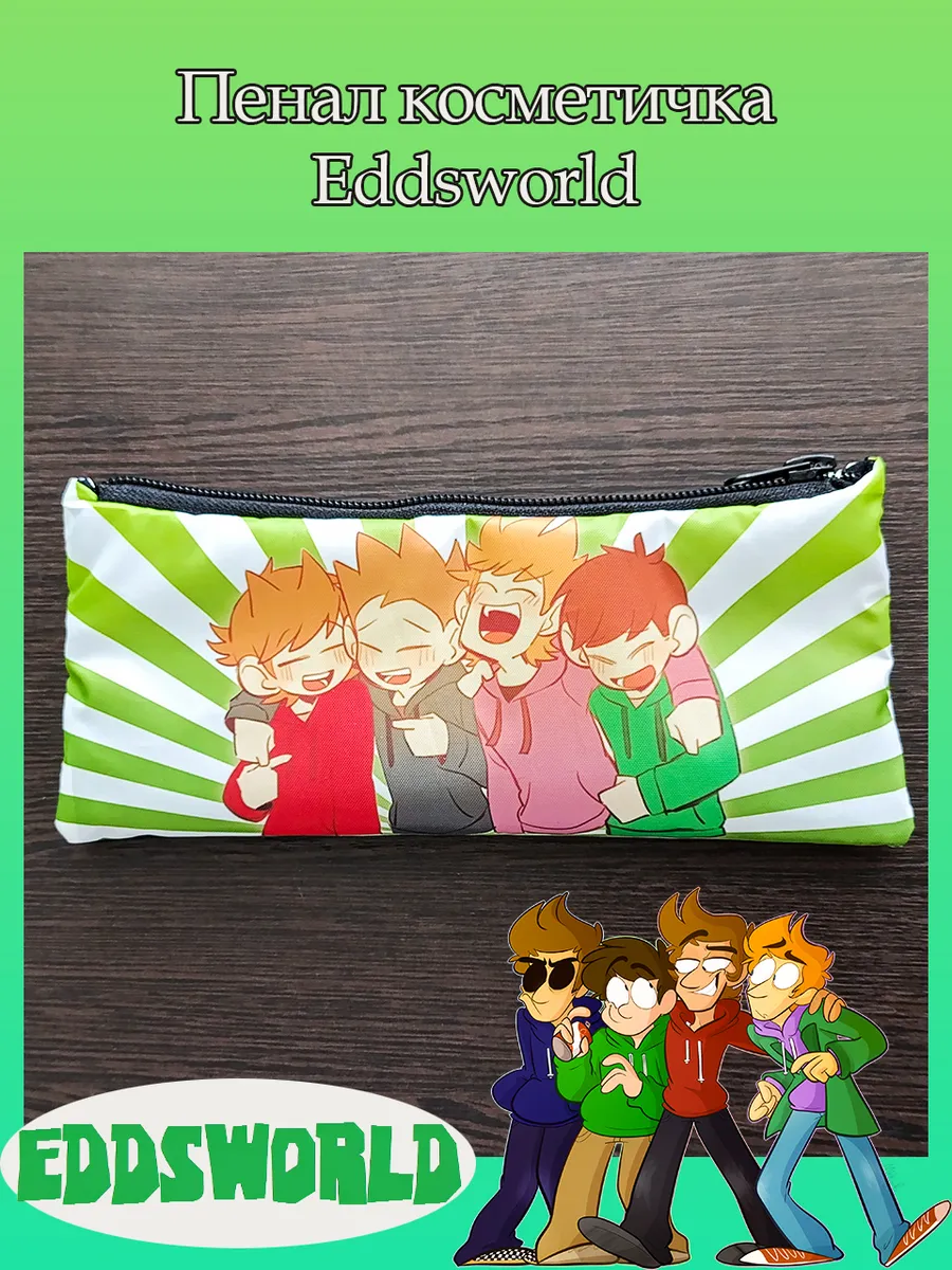 Пенал школьный с большой молнией и с одним вместительным отделением. Изображение из веб-сериала Эддсворлд (Eddsworld). Принт яркий и четкий, устойчивый к выцветанию и стирке.