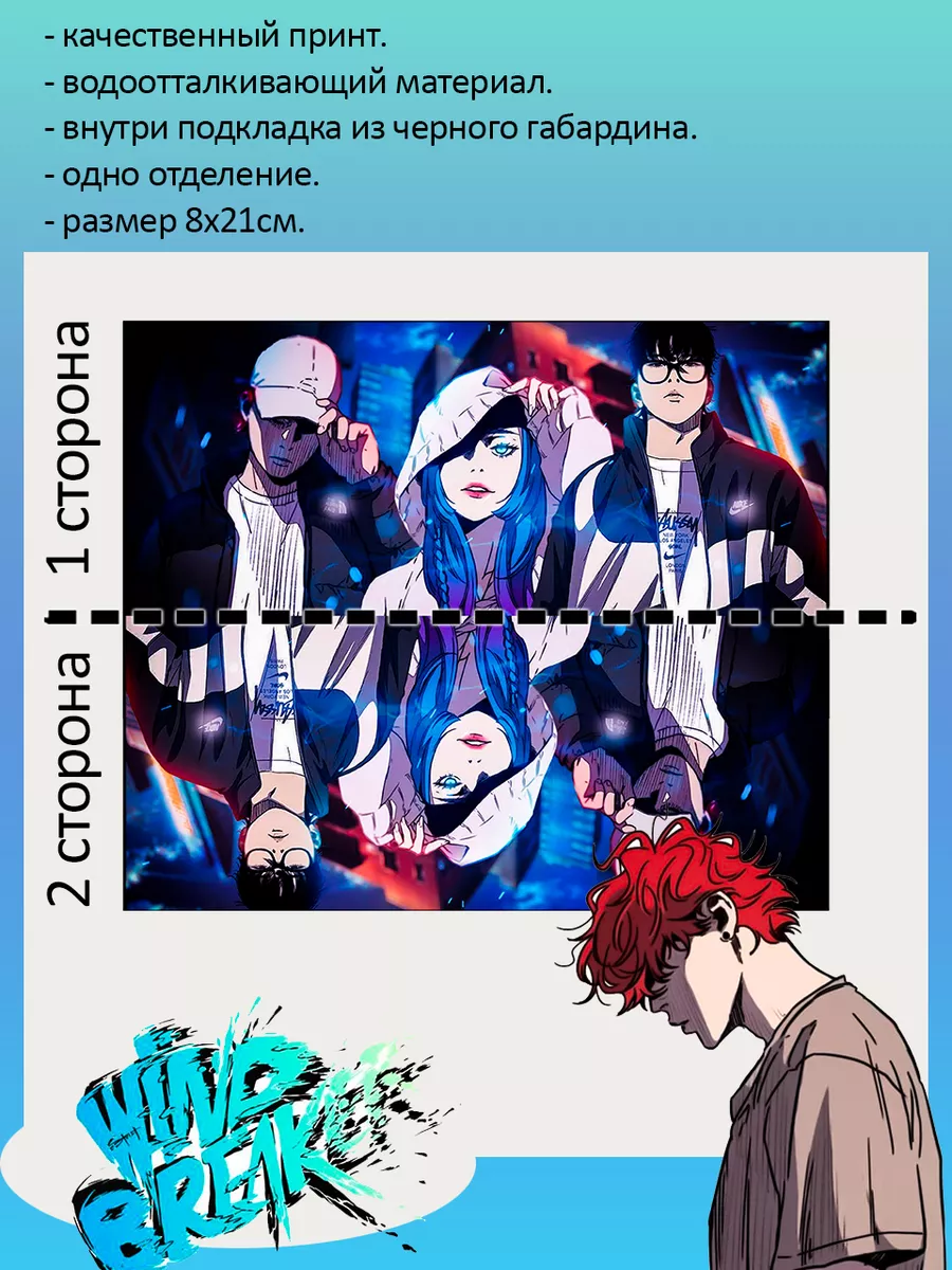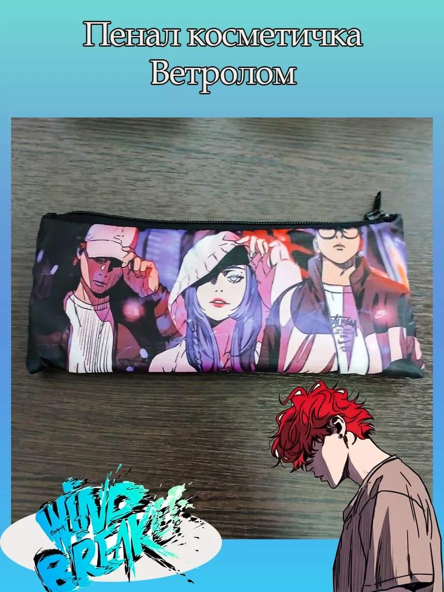 Пенал школьный с большой молнией и с одним вместительным отделением. Изображение из аниме Ветролом (Wind Breaker). Принт яркий и четкий, устойчивый к выцветанию и стирке.