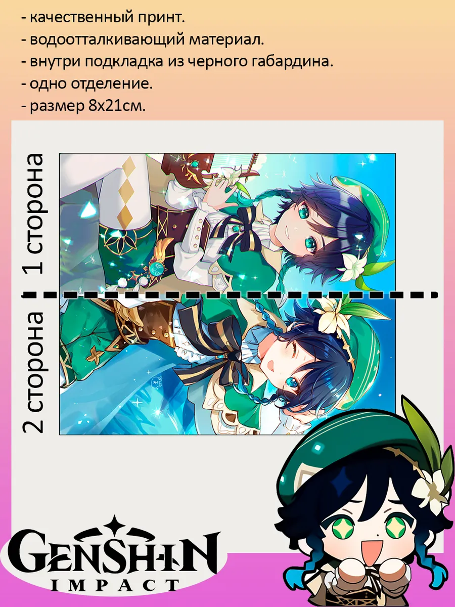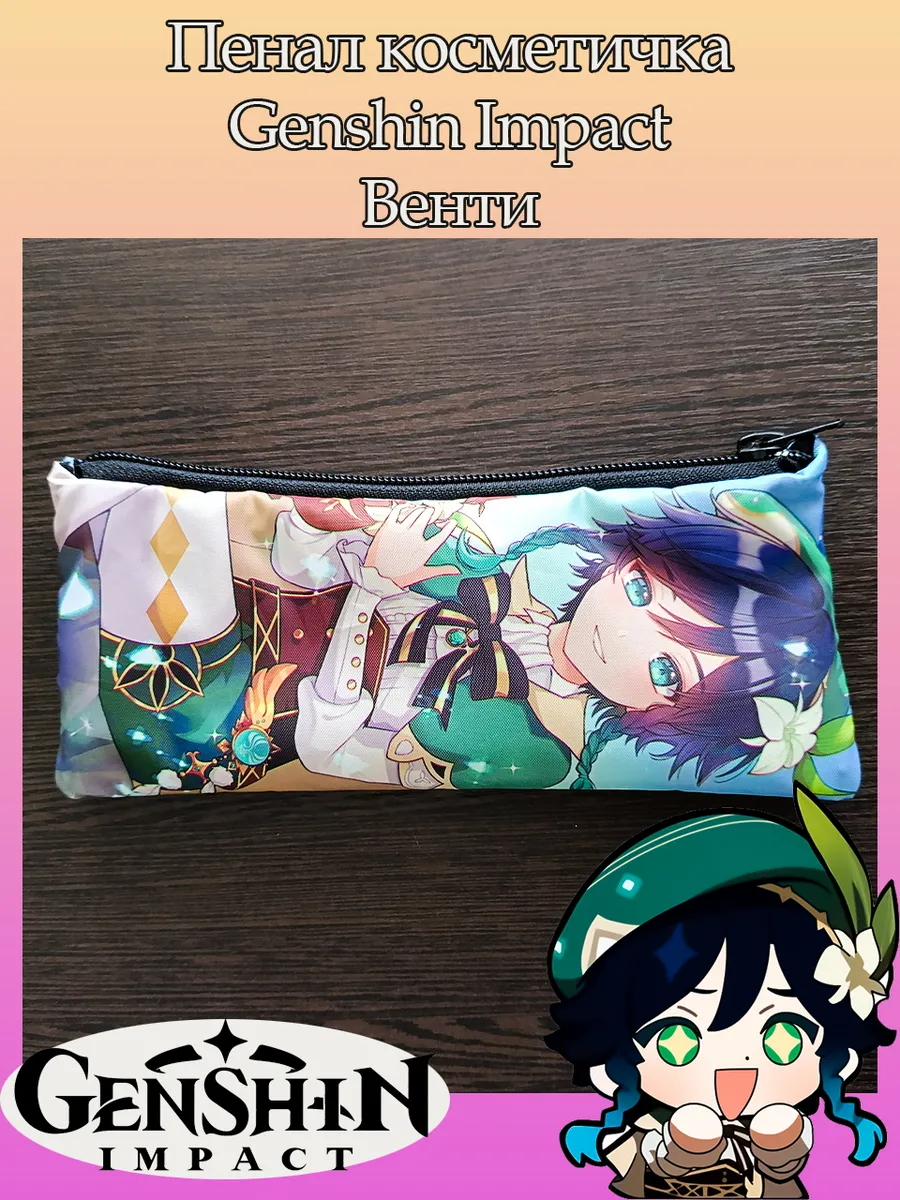 Пенал школьный с большой молнией и с одним вместительным отделением. Изображение из игры Геншин Импакт (Genshin Impact). Принт яркий и четкий, устойчивый к выцветанию и стирке.