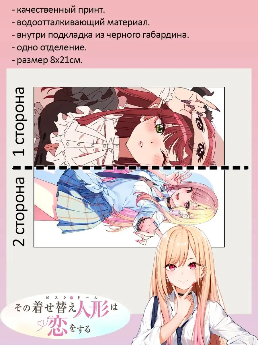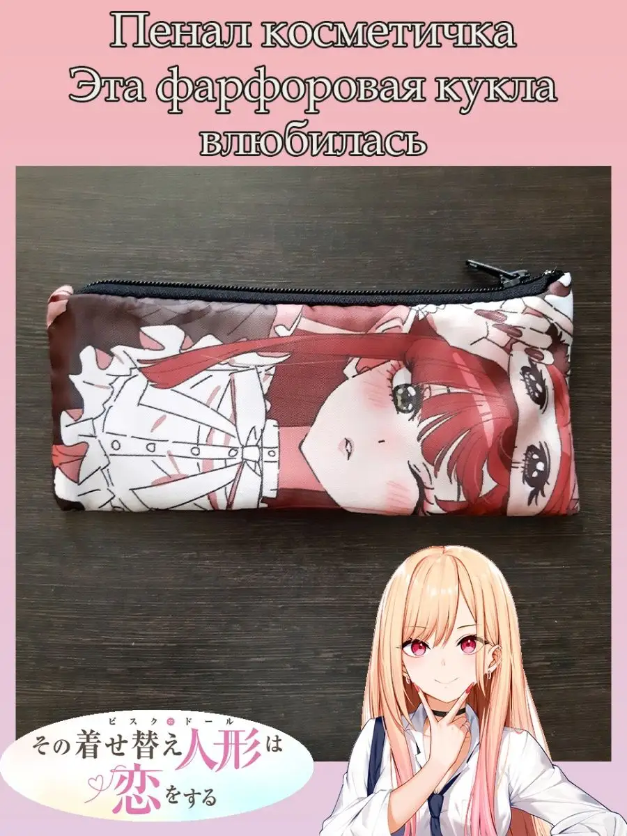 Пенал школьный с большой молнией и с одним вместительным отделением. Изображение из аниме Эта фарфоровая кукла влюбилась (Sono Bisque Doll wa Koi wo Suru). Принт яркий и четкий, устойчивый к выцветанию и стирке.