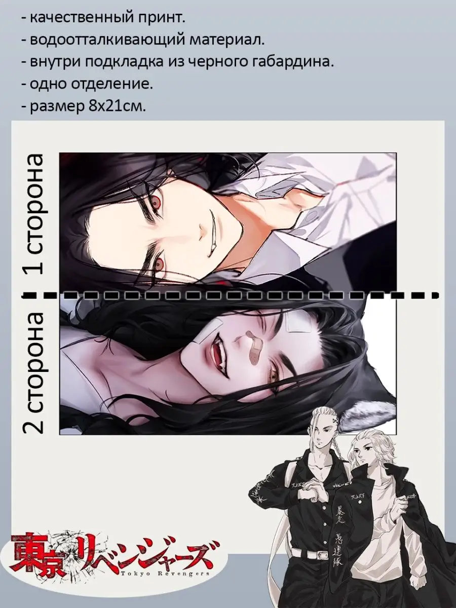Пенал школьный с большой молнией и с одним вместительным отделением. Изображение из аниме Токийские мстители (Tokyo Revengers). Принт яркий и четкий, устойчивый к выцветанию и стирке.
