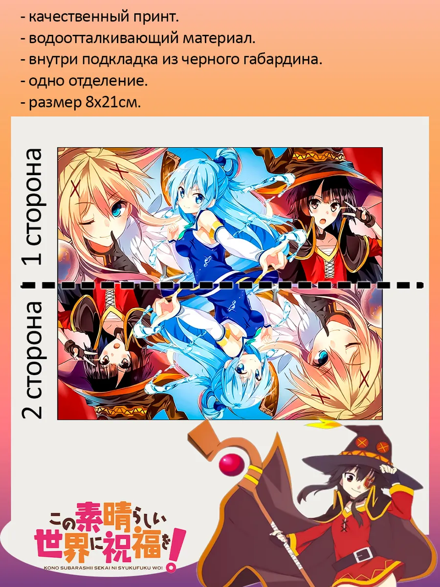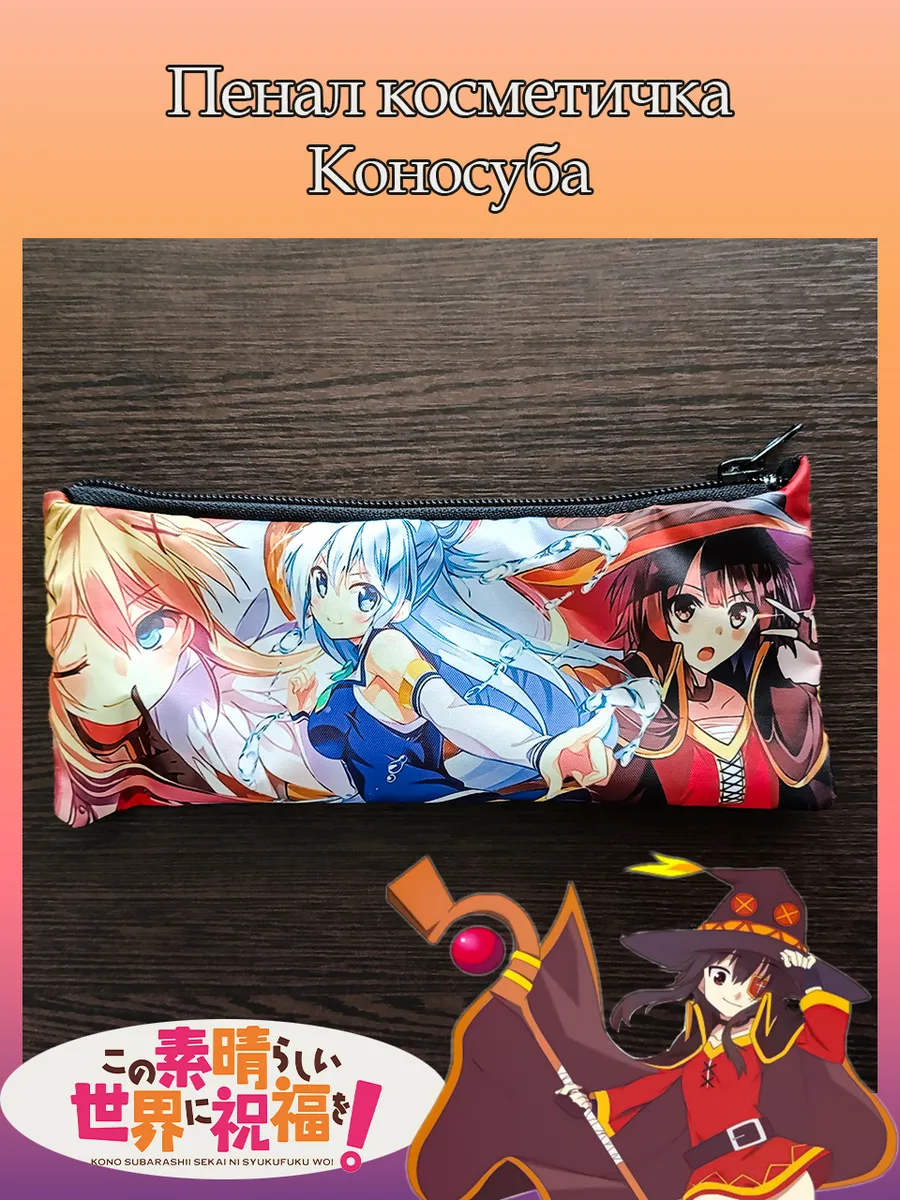 Пенал-косметичка HoshiBoshi - это стильное и практичное решение для хранения канцелярских принадлежностей или косметики. Изображение из аниме Богиня благословляет этот удивительный мир Коносуба ( KonoSuba ).