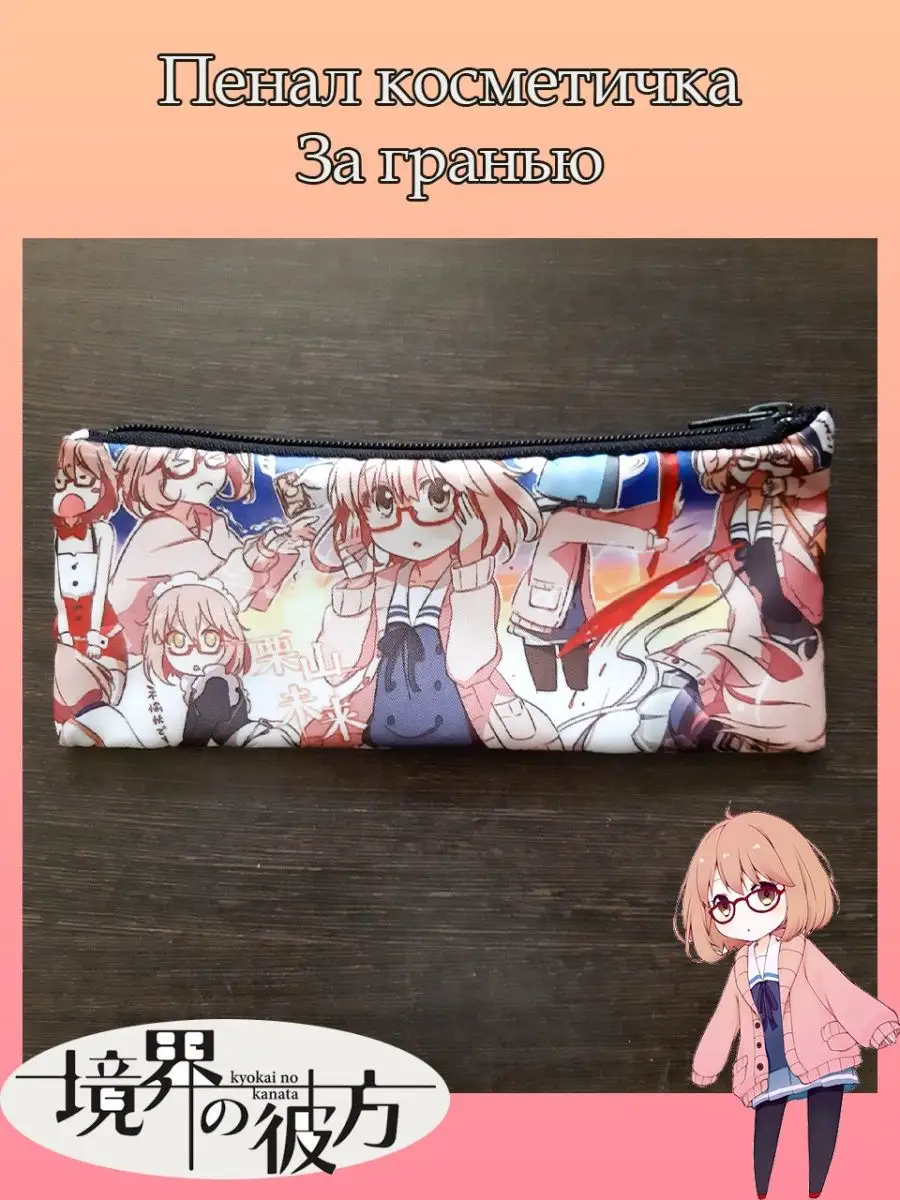Пенал школьный с большой молнией и с одним вместительным отделением. Изображение из аниме За гранью (Kyoukai no Kanata). Принт яркий и четкий, устойчивый к выцветанию и стирке.