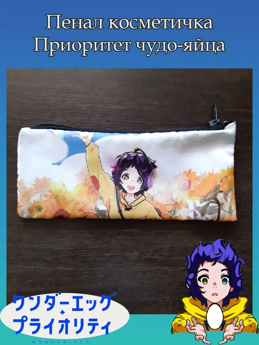 Пенал школьный с большой молнией и с одним вместительным отделением. Изображение из аниме Приоритет чудо яйца (Wonder Egg Priority). Принт яркий и четкий, устойчивый к выцветанию и стирке.