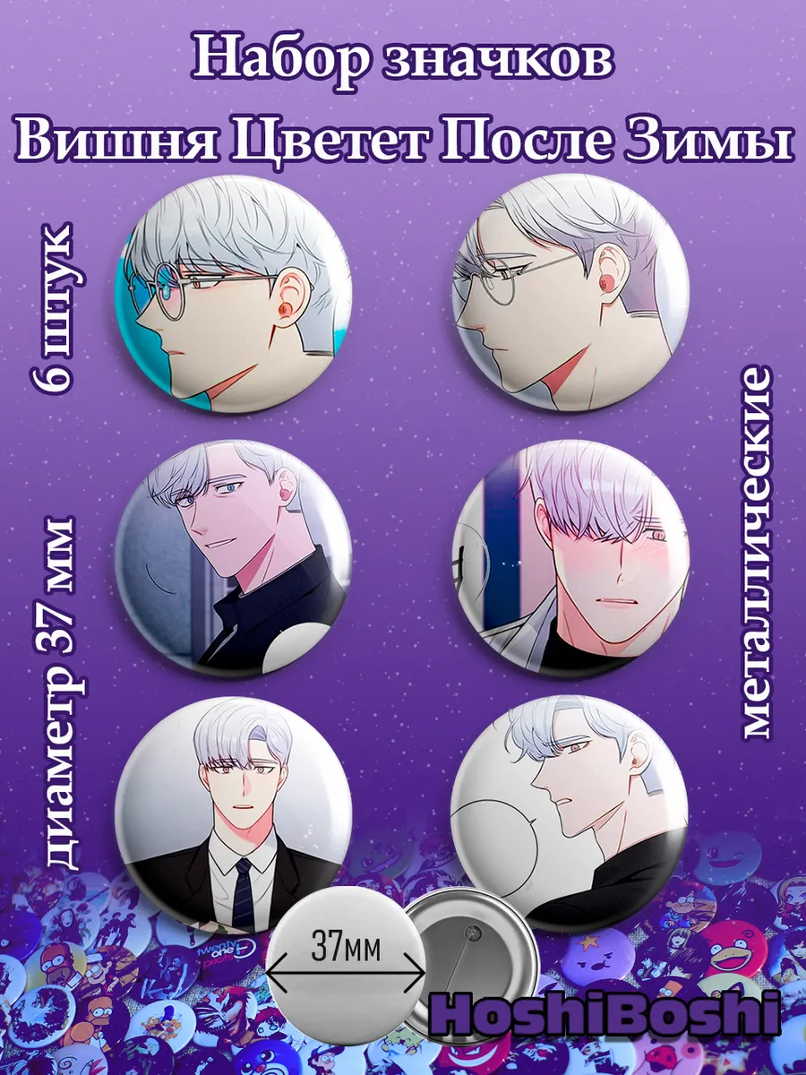 Набор из 6 металлических значков с изображениями из манхвы Вишня Цветет после Зимы ( Cherry Blossoms After Winter ).