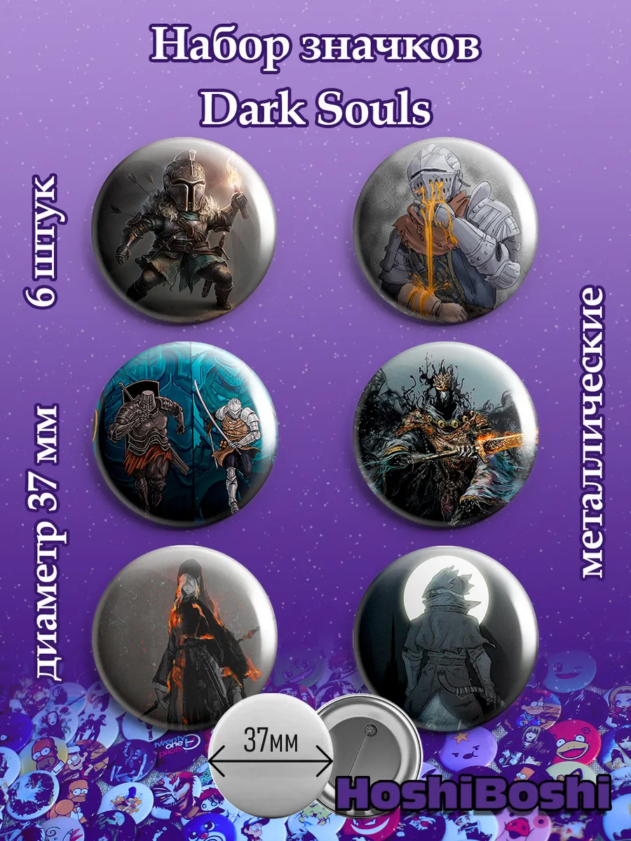 Набор из 6 металлических значков с изображениями из игры Дарк Соулс ( Dark Souls ).