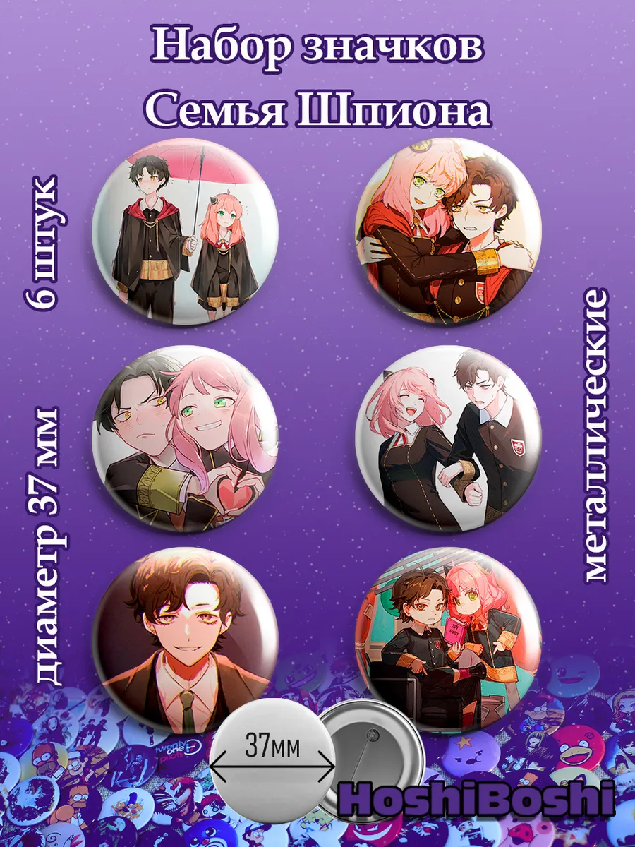 Набор из 6 металлических значков с изображениями из аниме Семья шпиона ( Spy × Family ).