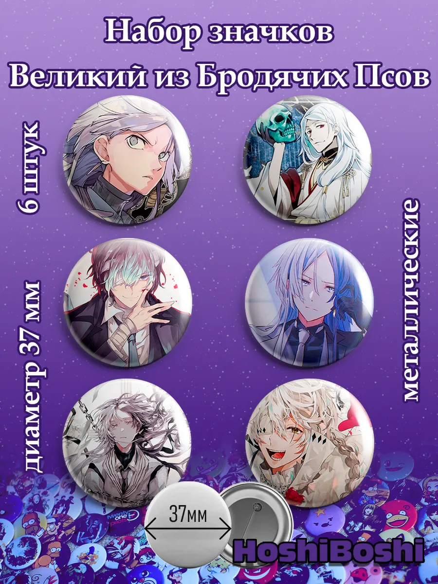 Набор из 6 металлических значков с изображениями из аниме Великий из Бродячих псов ( Bungo Stray Dogs ).