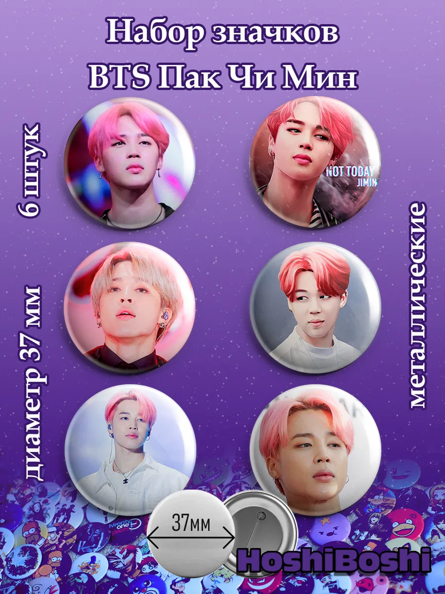 Набор из 6 металлических значков с изображениями с Кей-Поп группой БТС ( BTS ).