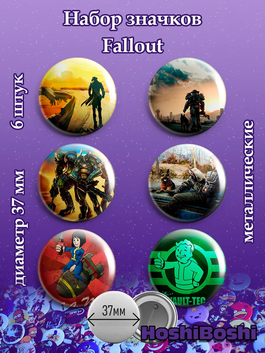 Набор из 6 металлических значков с изображениями из вселенной Фаллаут ( Fallout ).