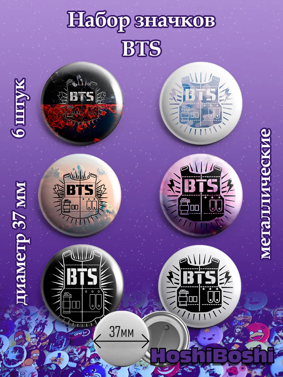 Набор из 6 металлических значков с изображениями с Кей-Поп группой БТС ( BTS ).