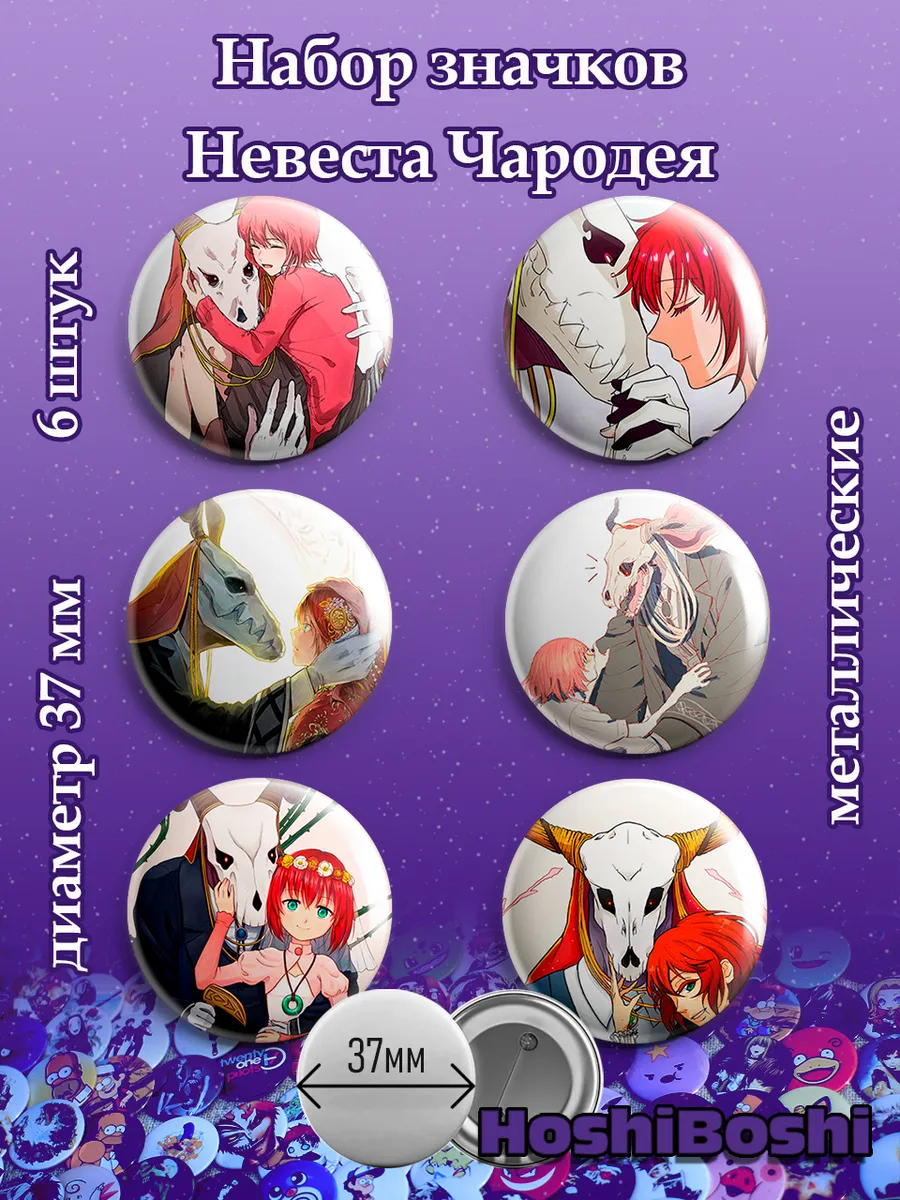 Набор из 6 металлических значков с изображениями из аниме Невеста Чародея (Mahoutsukai no Yome ).