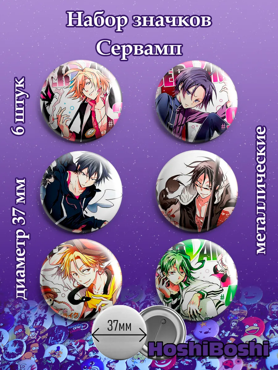 Набор из 6 металлических значков с изображениями из аниме Сервамп Слуга вампир ( Servamp ).
