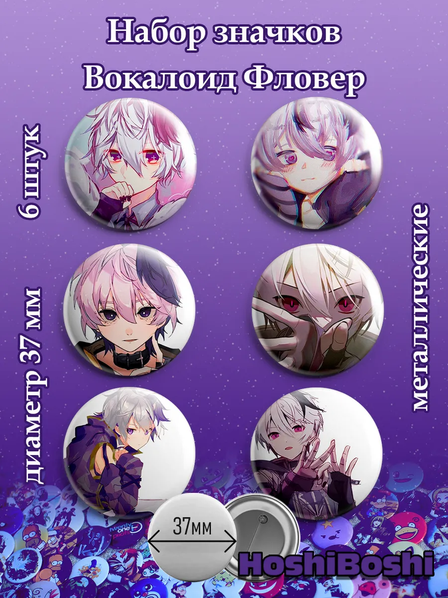 Набор из 6 металлических значков с изображениями Вокалоидов ( Vocaloid ).