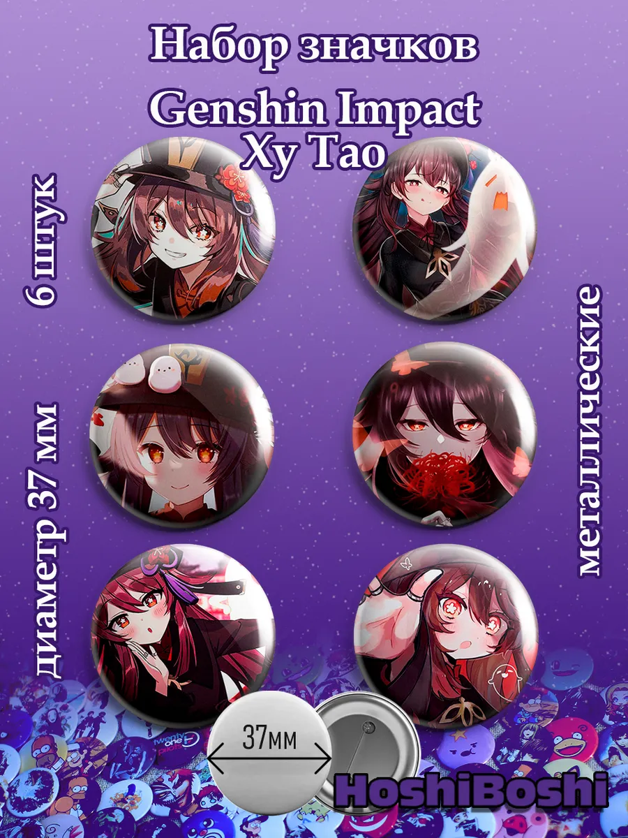 Набор из 6 металлических значков с изображениями из игры Геншин Импакт ( Genshin Impact ).