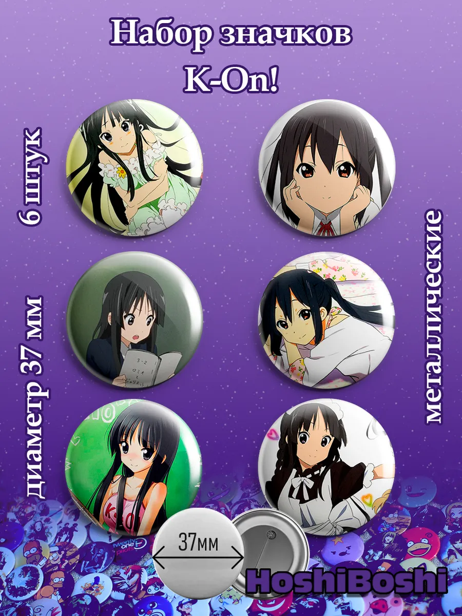 Набор из 6 металлических значков с изображениями из аниме Кейон ( K-On! ).