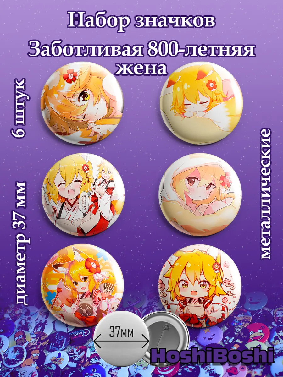 Набор из 6 металлических значков с изображениями из аниме Заботливая 800 летняя жена ( Sewayaki Kitsune no Senko-san ).