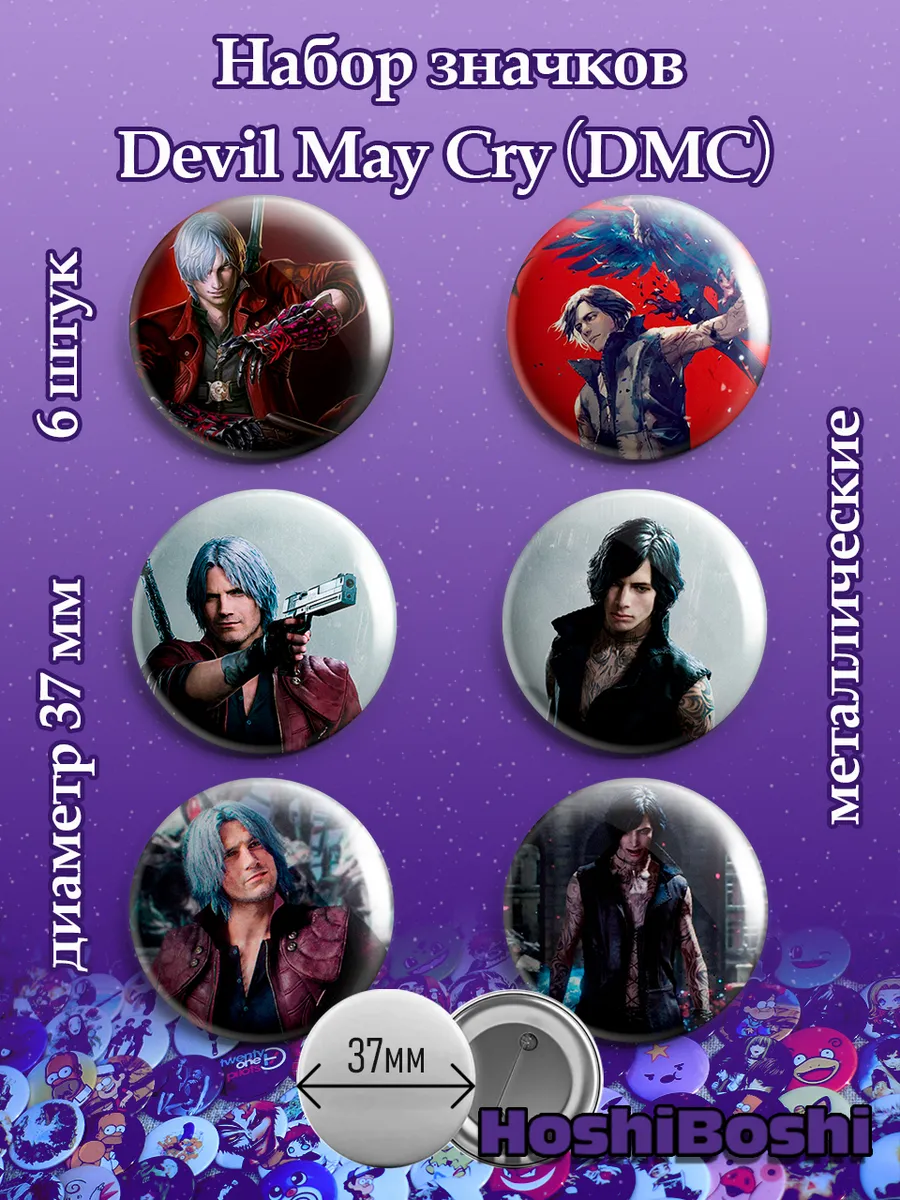 Набор из 6 металлических значков с изображениями из игры Девил Май Край ( Devil May Cry ).