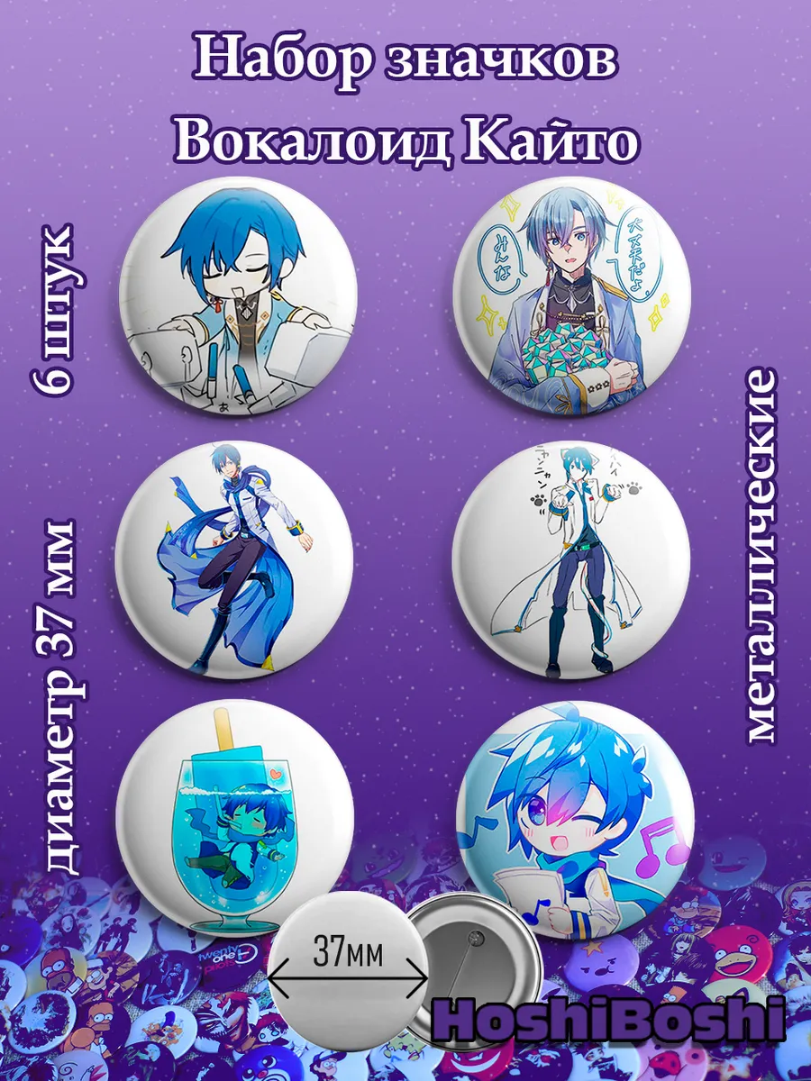 Набор из 6 металлических значков с изображениями Вокалоидов ( Vocaloid ).