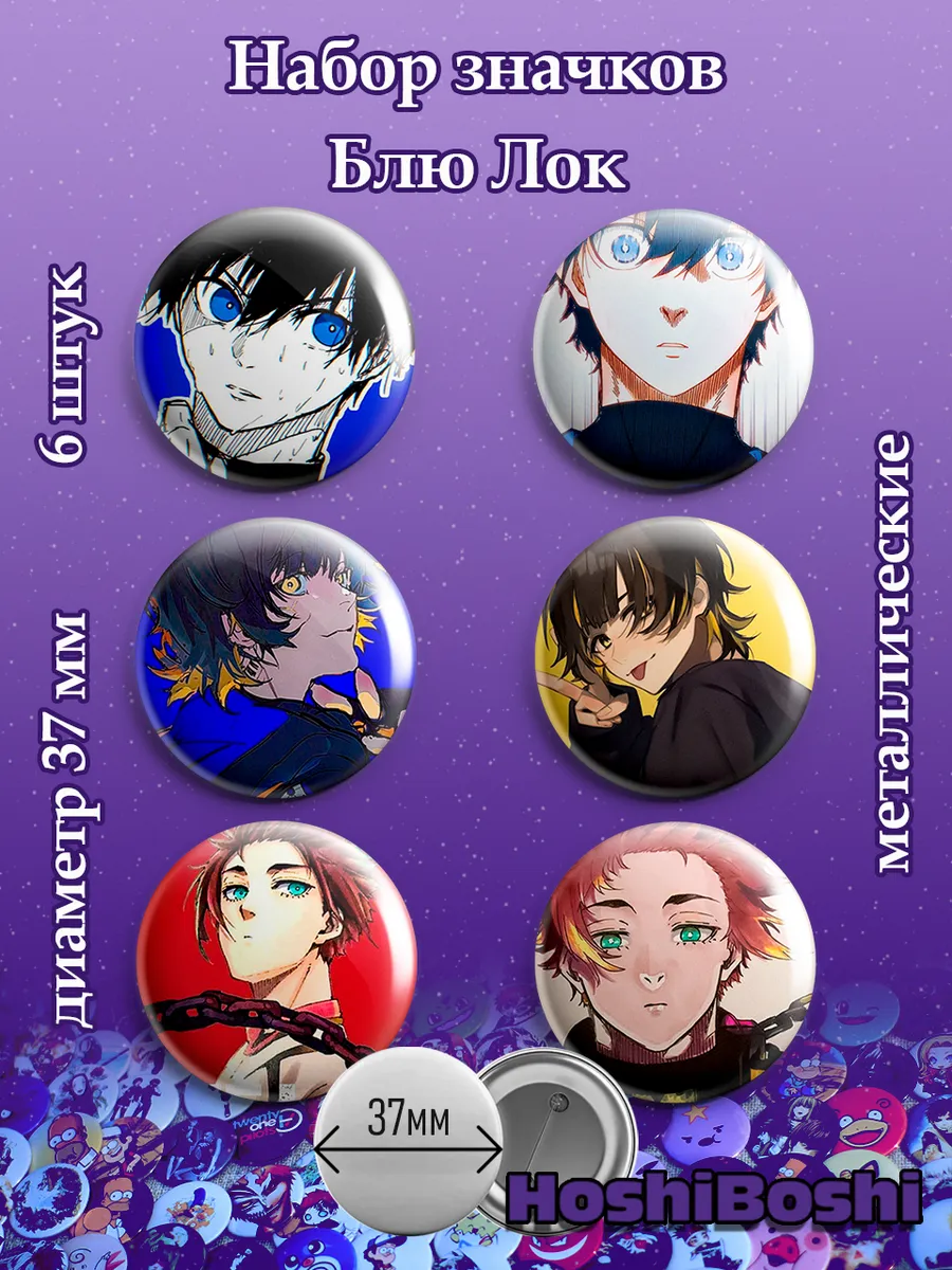 Набор из 6 металлических значков с изображениями из аниме Блю Лок ( Blue Lock ).