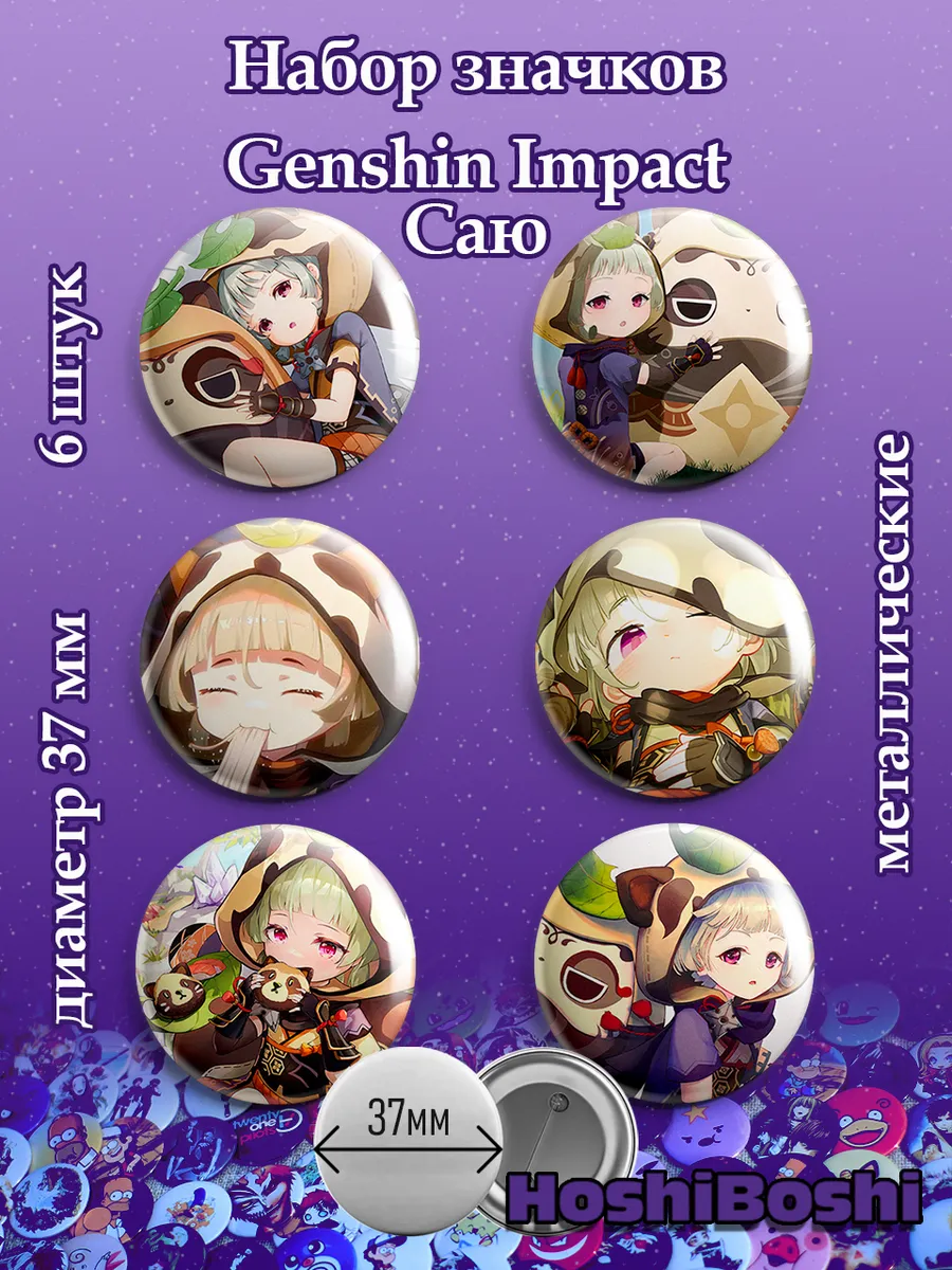 Набор из 6 металлических значков с изображениями из игры Геншин Импакт ( Genshin Impact ).