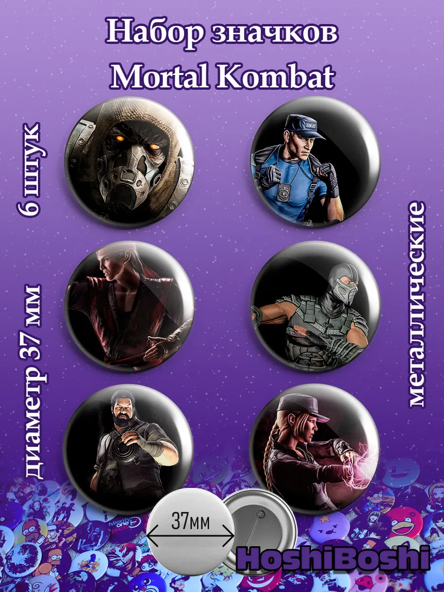 Набор из 6 металлических значков с изображениями из игры Мортал Комбат ( Mortal Kombat ).