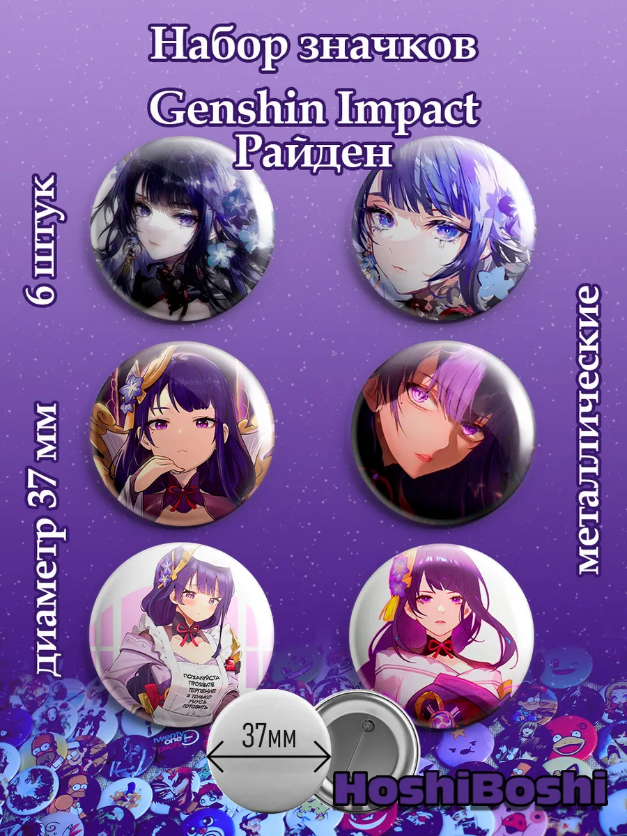 Набор из 6 металлических значков с изображениями из игры Геншин Импакт ( Genshin Impact ).