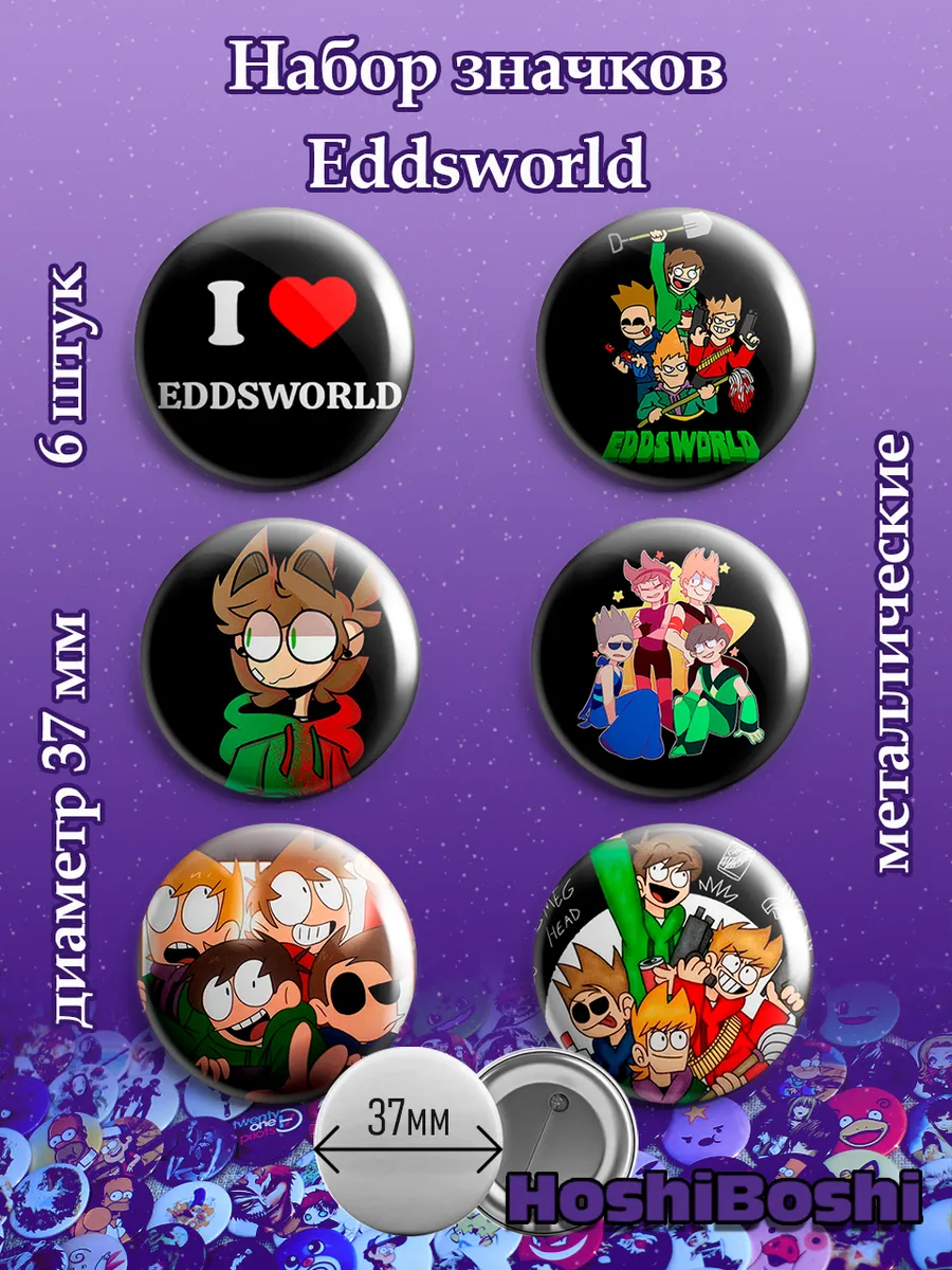 Набор из 6 металлических значков с изображениями из веб-сериала Эддсворлд ( Eddsworld ).