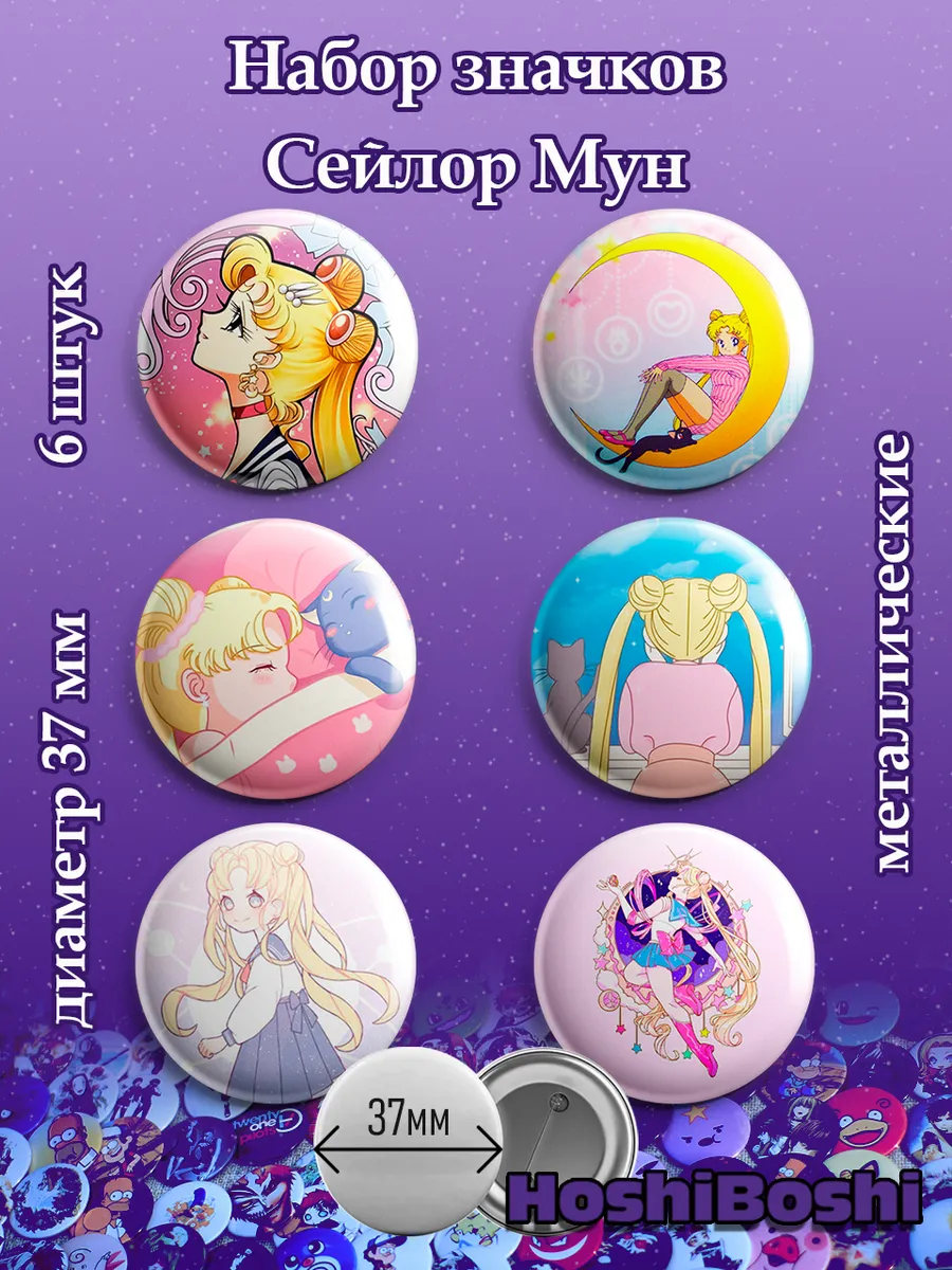 Набор из 6 металлических значков с изображениями из аниме Сейлор Мун ( Sailor Moon ).
