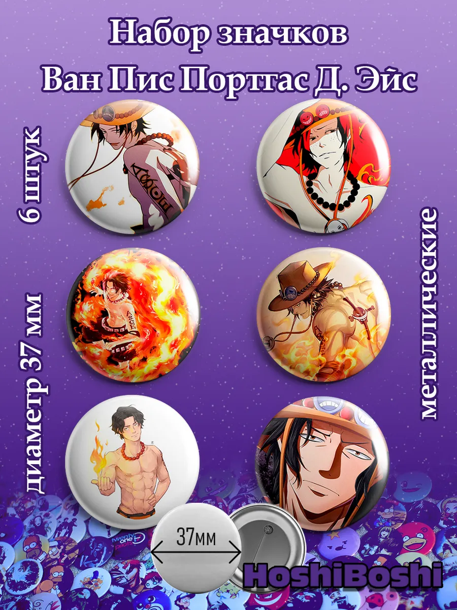 Набор из 6 металлических значков с изображениями из аниме Ван Пис ( One Piece ).
