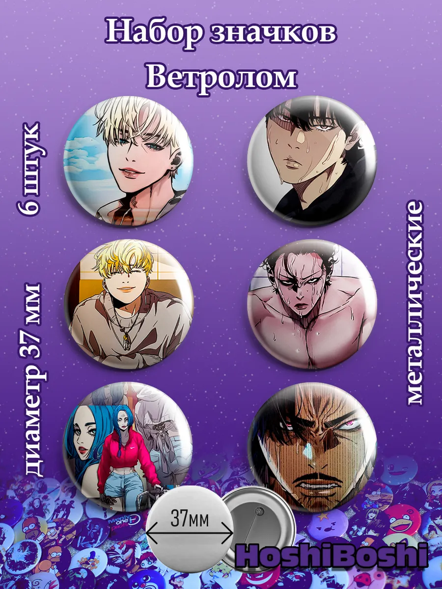 Набор из 6 металлических значков с изображениями из манхвы Ветролом ( Wind Breaker ).