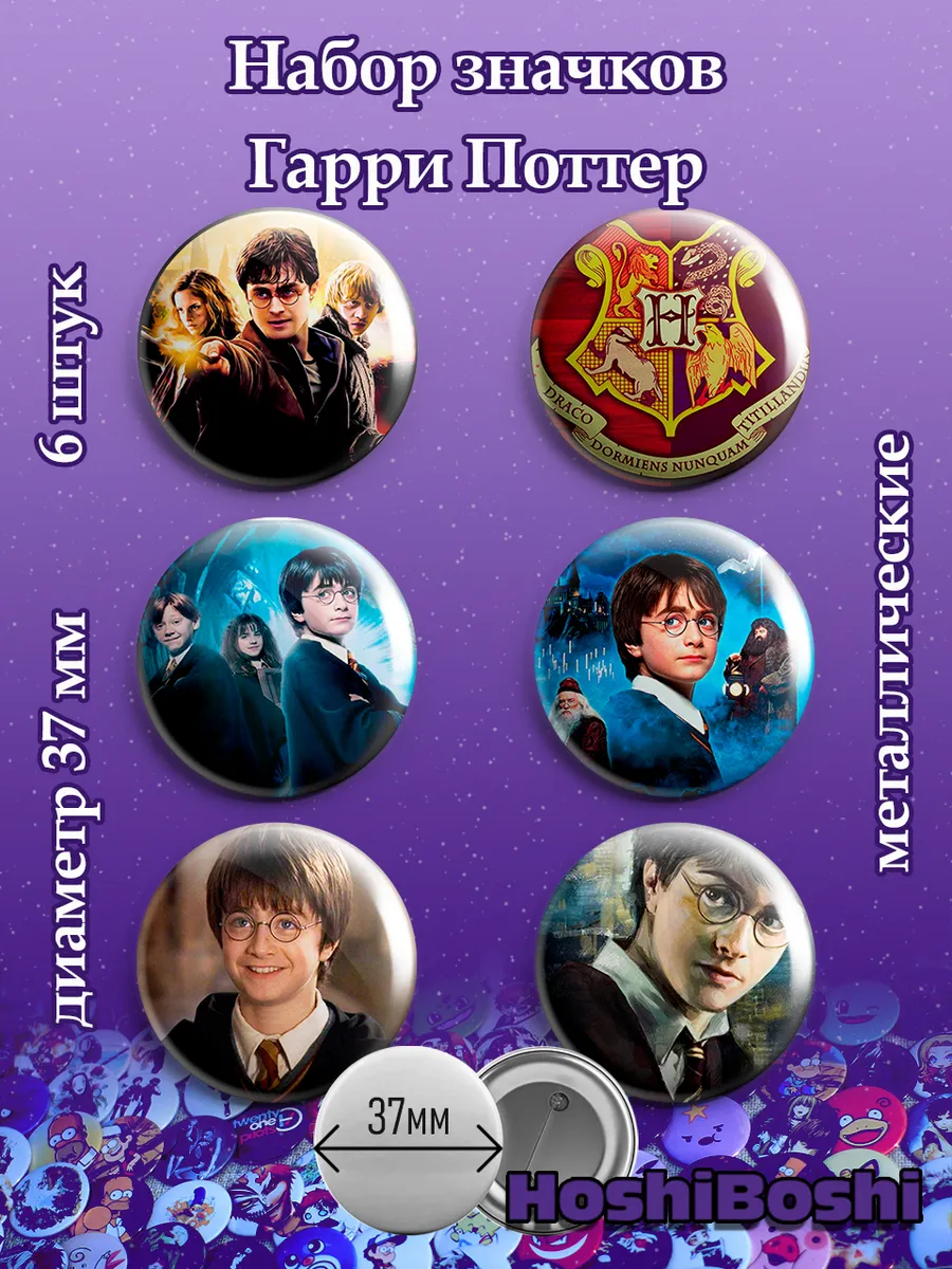 Набор из 6 металлических значков с изображениями из вселенной Гарри Поттер ( Harry Potter ).