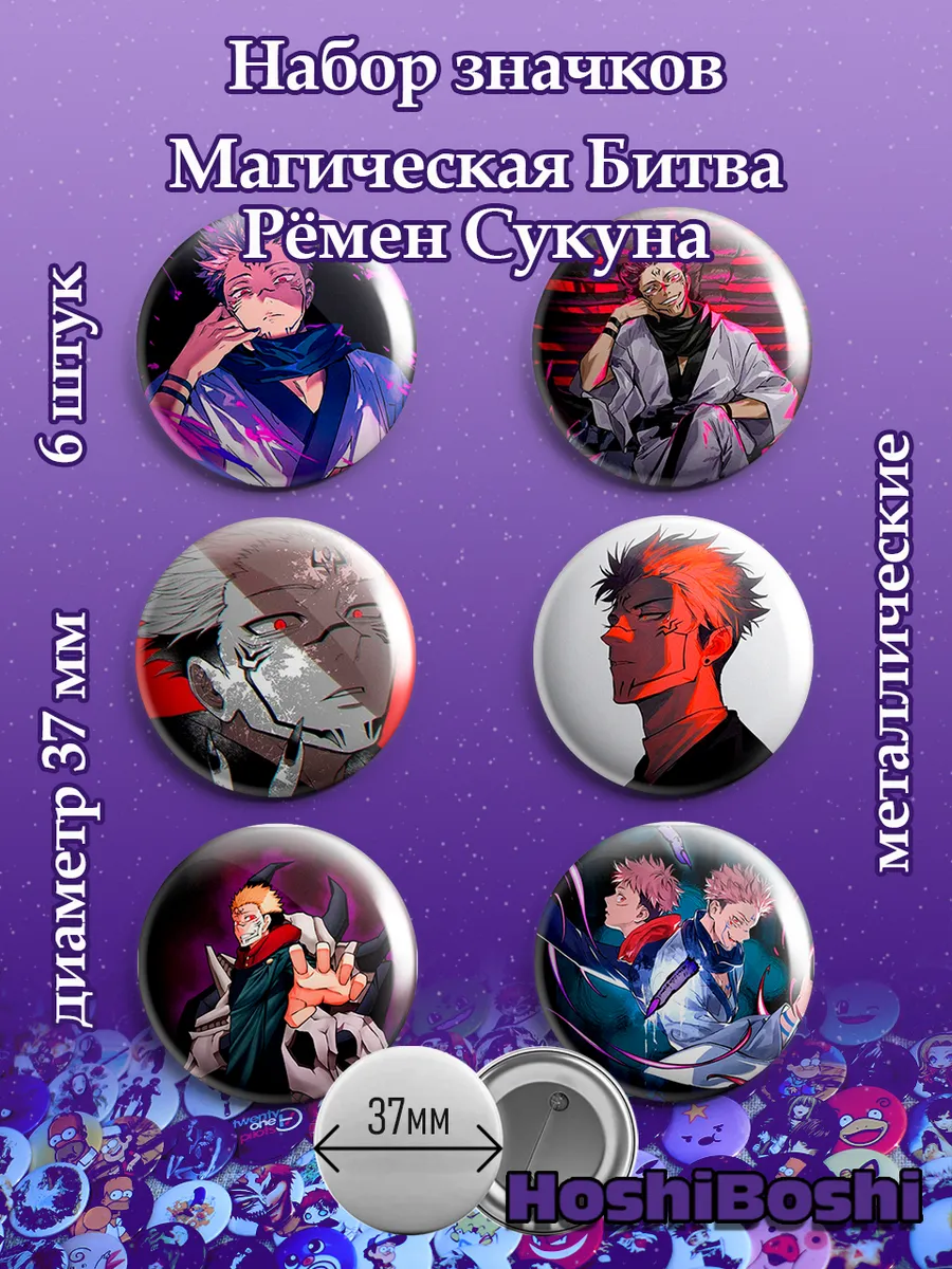 Набор из 6 металлических значков с изображениями из аниме Магическая Битва ( Jujutsu Kaisen ).