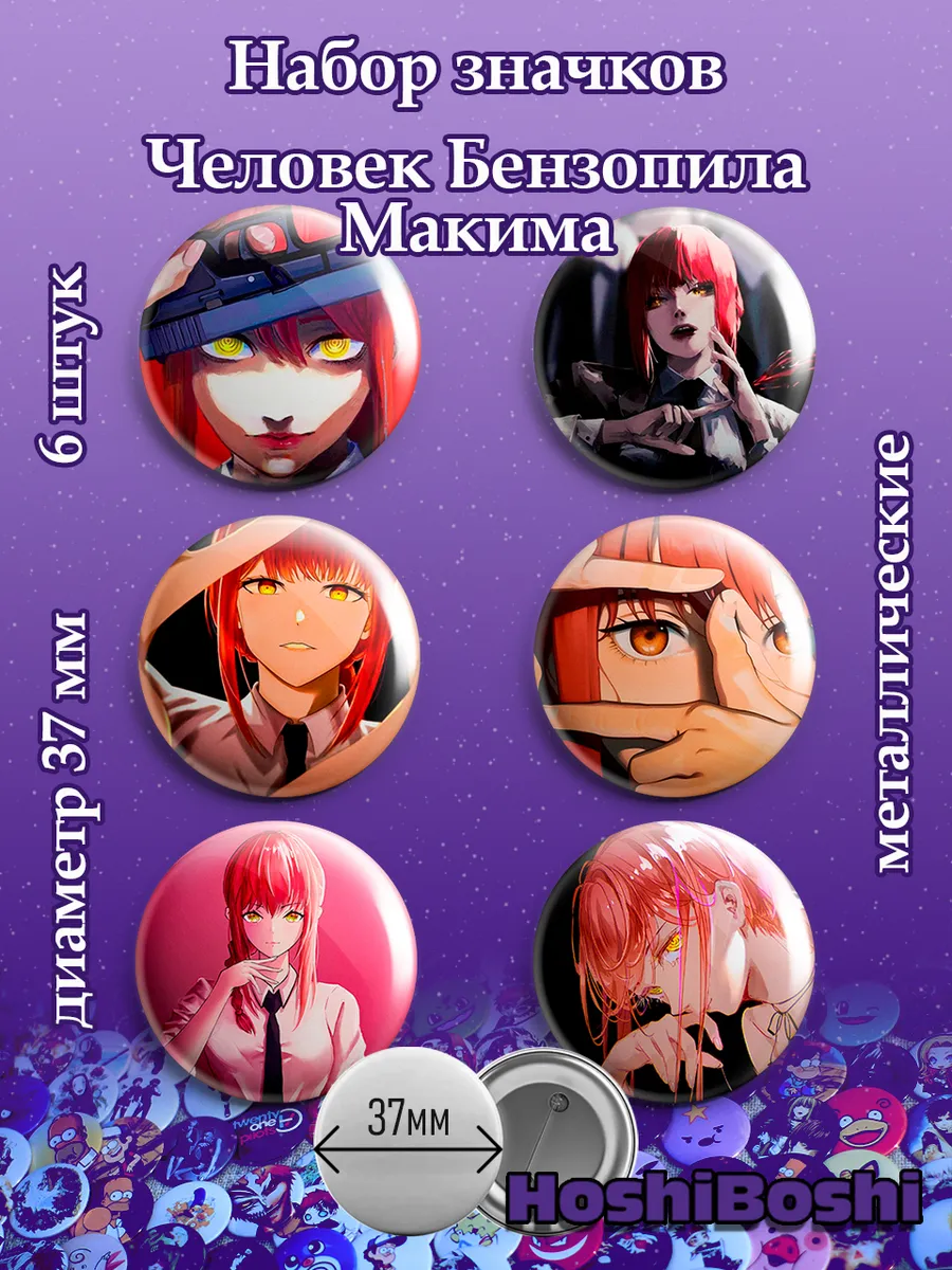 Набор из 6 металлических значков с изображениями из аниме Человек Бензопила ( Chainsaw Man ).