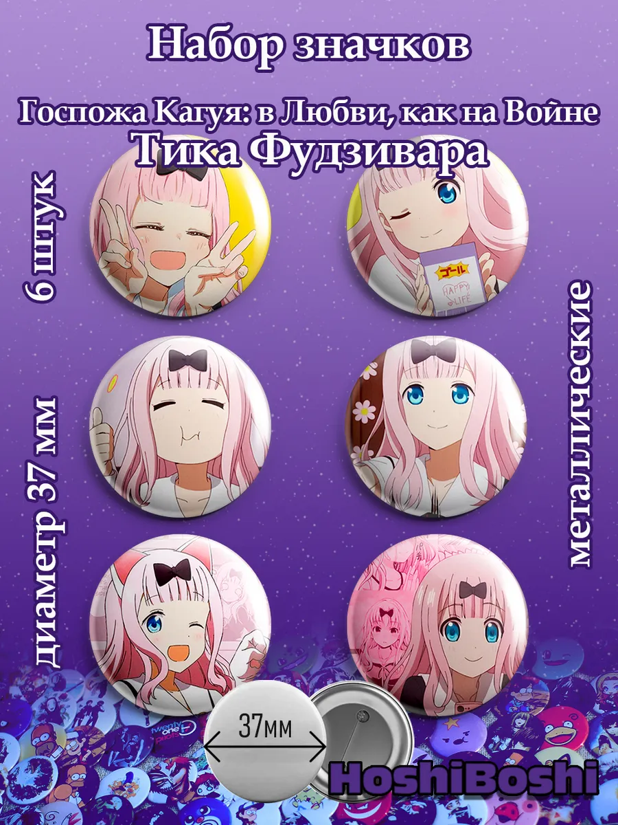 Набор из 6 металлических значков с изображениями из аниме Госпожа Кагуя: в любви, как на войне ( Kaguya-sama wa Kokurasetai: Tensai-tachi no Renai Zunousen ).