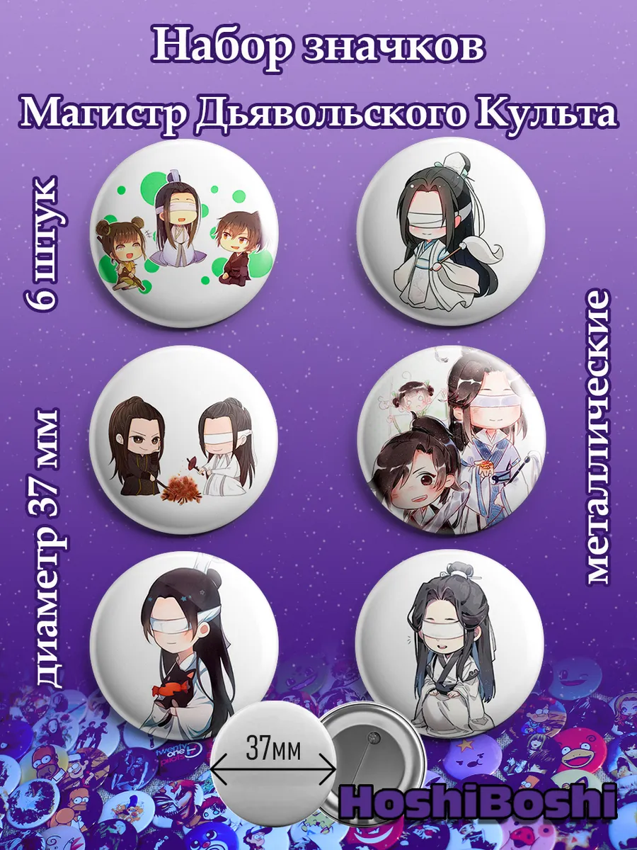 Набор из 6 металлических значков с изображениями из аниме Магистр Дьявольского Культа ( Mo Dao Zu Shi ).
