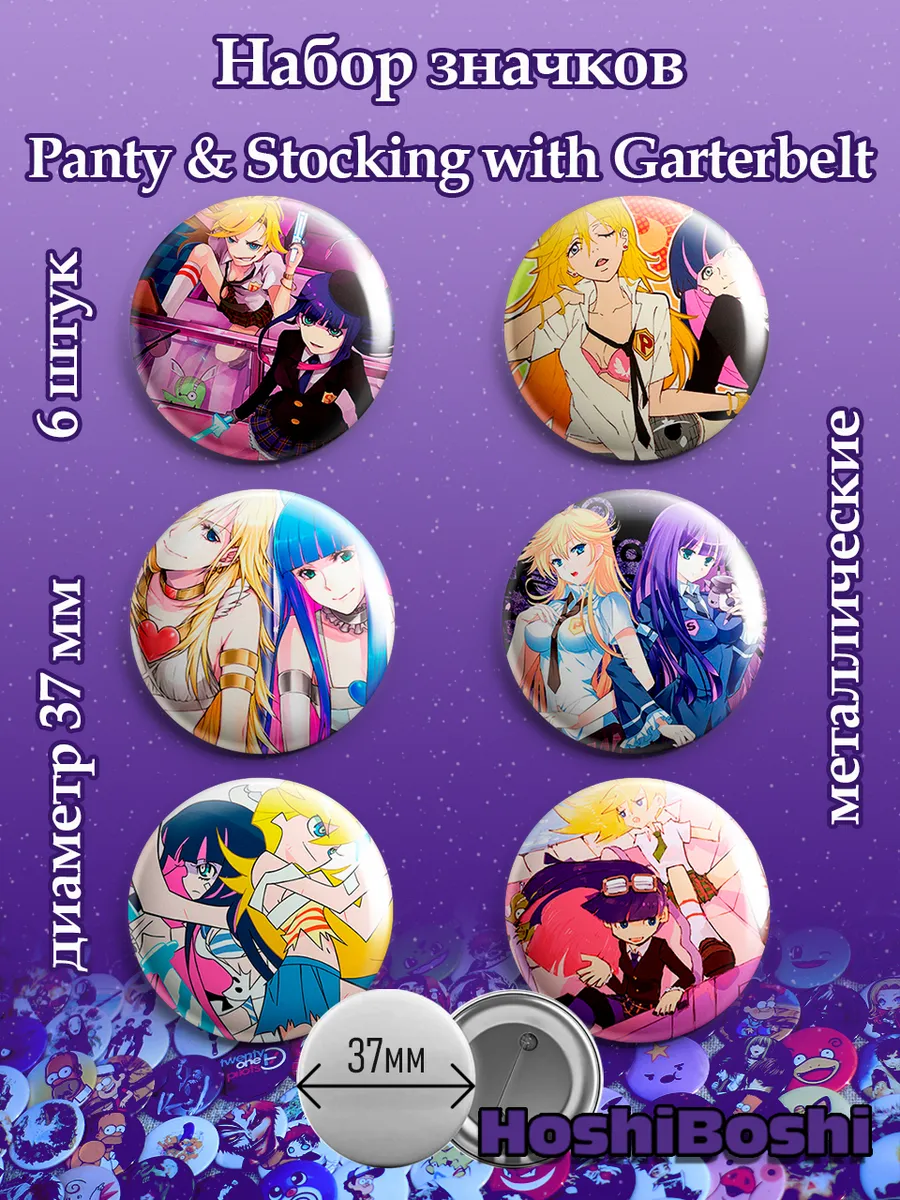 Набор из 6 металлических значков с изображениями из аниме Труска и Чулко ( Panty & Stocking with Garterbelt ).