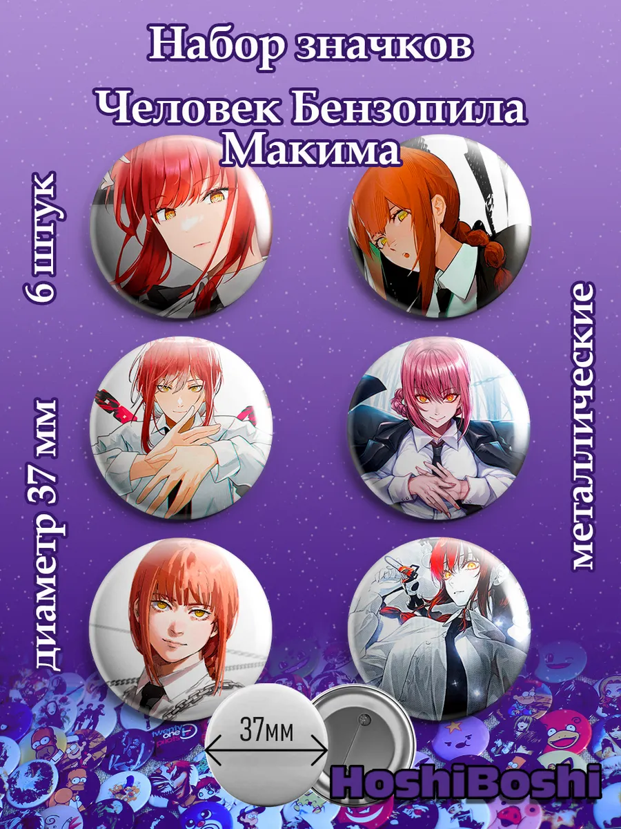 Набор из 6 металлических значков с изображениями из аниме Человек Бензопила ( Chainsaw Man ).