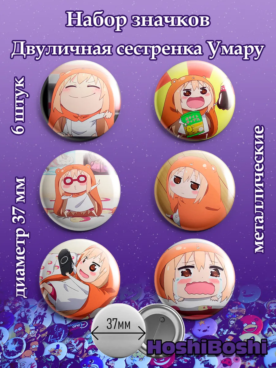 Набор из 6 металлических значков с изображениями из аниме Двуличная сестренка Умару ( Himouto! Umaru-chan ).