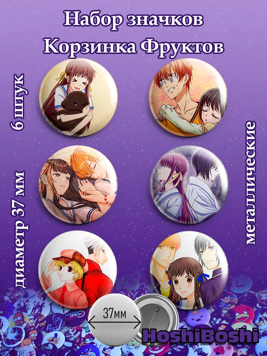 Набор из 6 металлических значков с изображениями из аниме Корзинка фруктов ( Fruits Basket ).