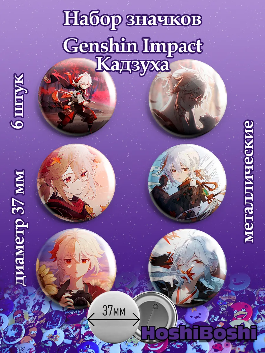 Набор из 6 металлических значков с изображениями из игры Геншин Импакт ( Genshin Impact ).